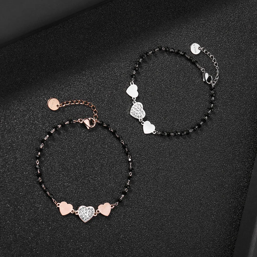 Crystal Multi Lover Heart Charms Bracelets Rose Gold Shine Zirconia Pendant Bracelet Boho Girls Jewelry Accessories