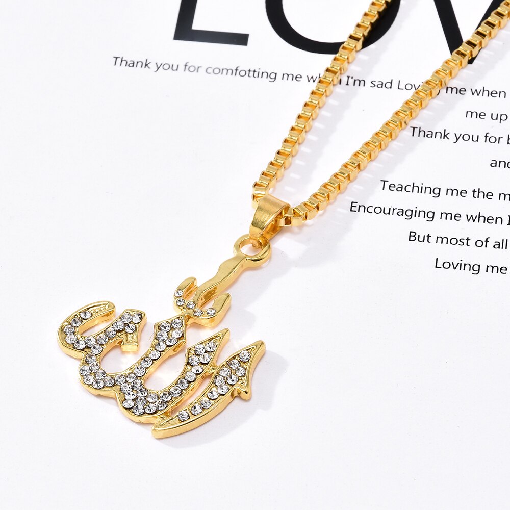 Crystal Pendant Necklace Gifts Sweater Chain Necklaces Gifts Allah Gold Plating Necklace Chain Simulated Anchor Islamic