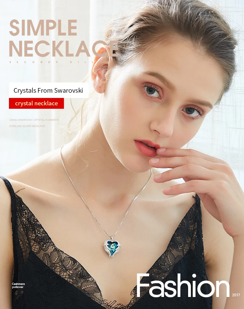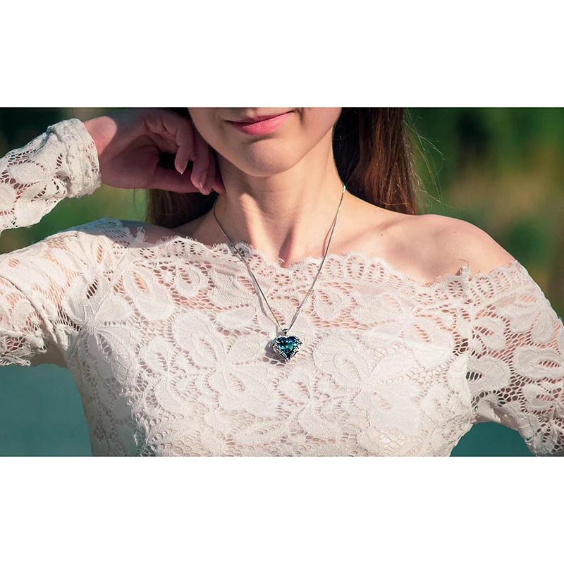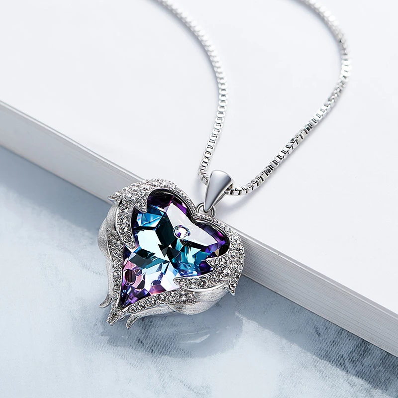 Crystals Necklaces Women Pendant Necklace Heart Shaped Blue Purple AB Luxury Fashion Jewelry Austrian Rhinestone Wholesale