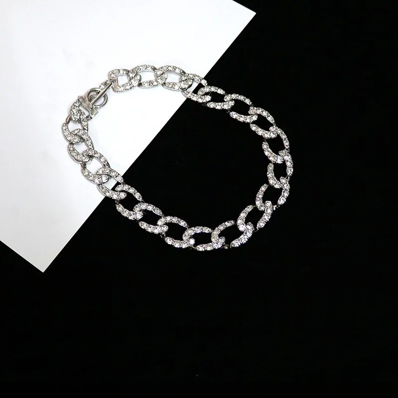 Cuban wide link chain choker necklace hip hop streetwear punk men women rhinestone shining clavicle chain