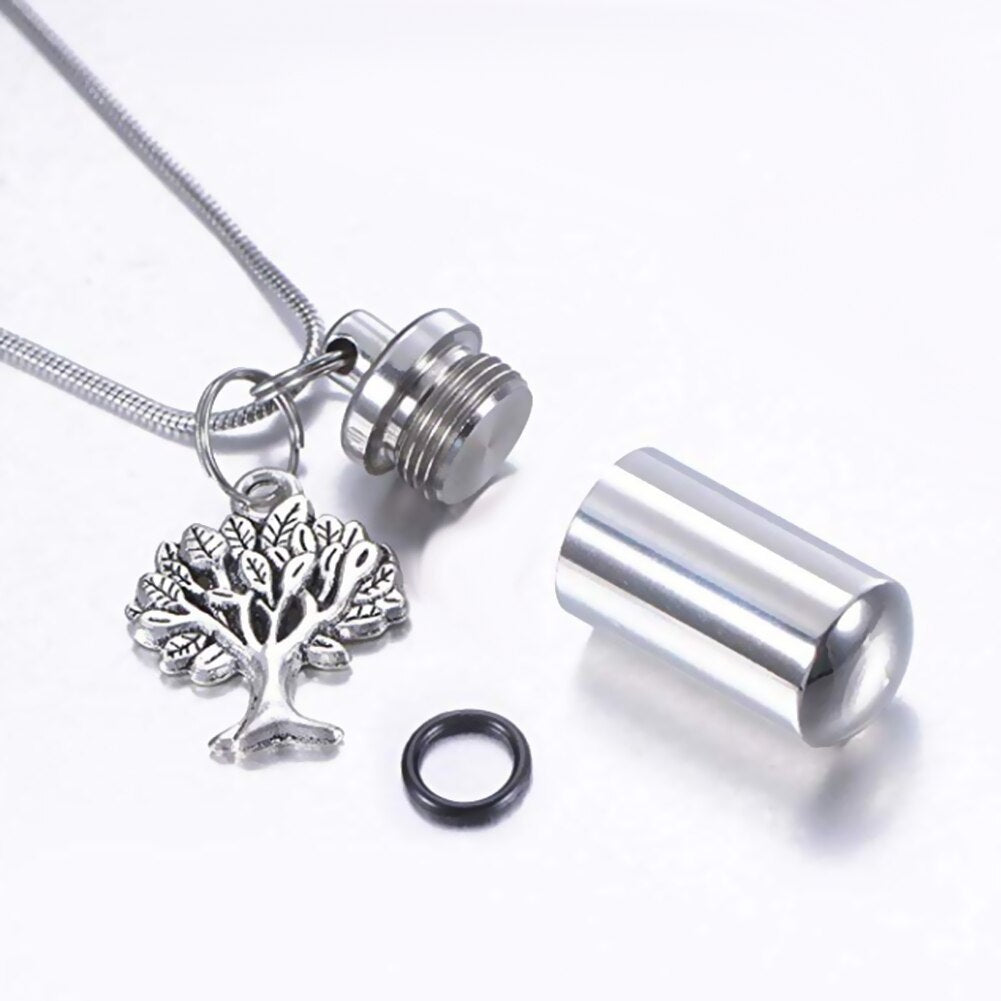 Custom Stainless Steel Jewelry Tree of Life Cylinder Cremation Urn Necklace Keepsake Ashes Pendant Memorial Jewelry