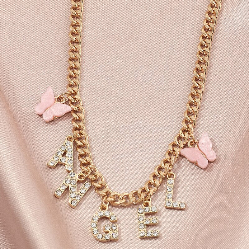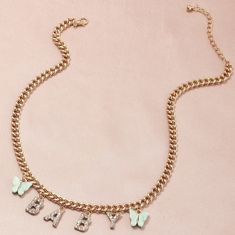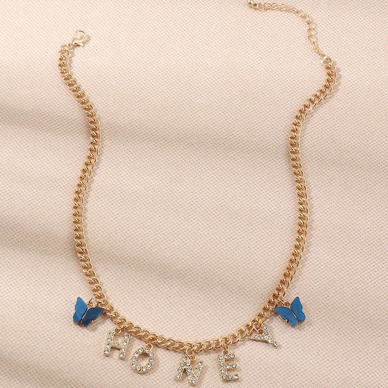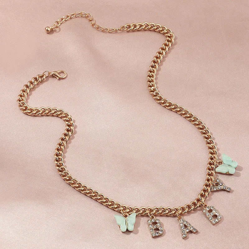 Cute Butterfly Choker Necklace for Women Girls BABY HONEY ANGEL Crystal Letters Collar Korean Necklace Trendy Jewelry Gifts