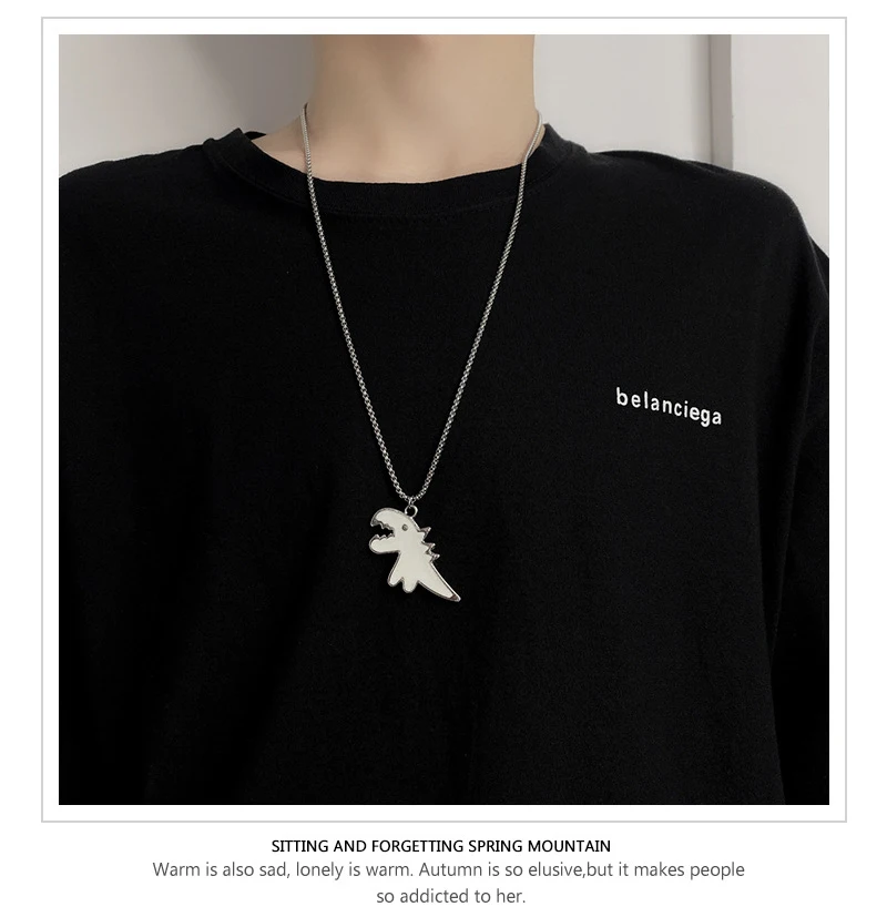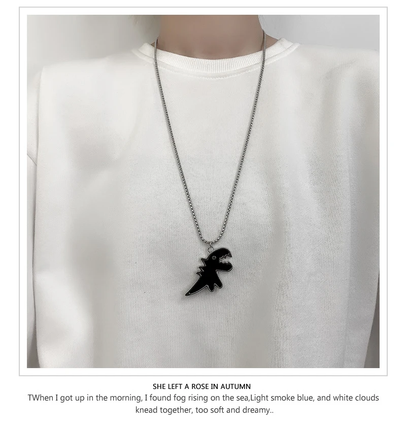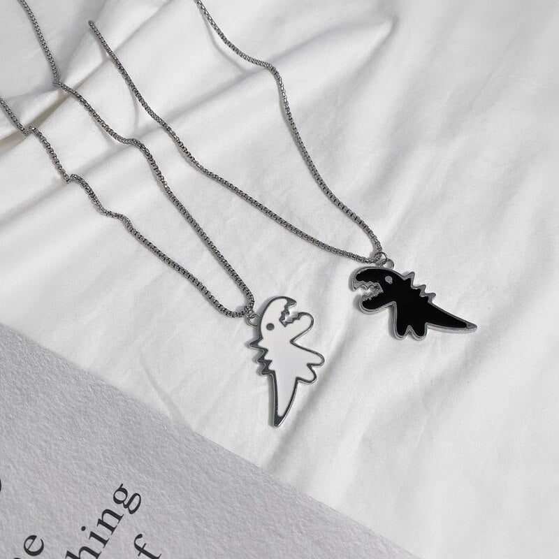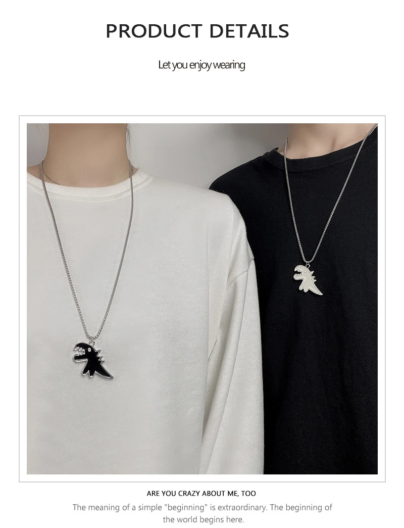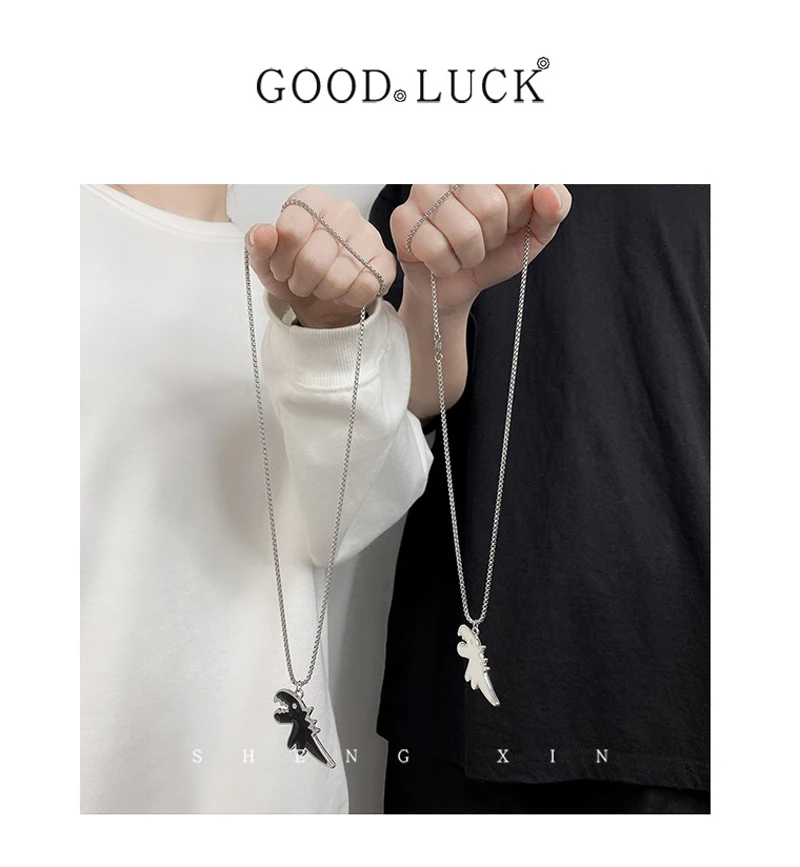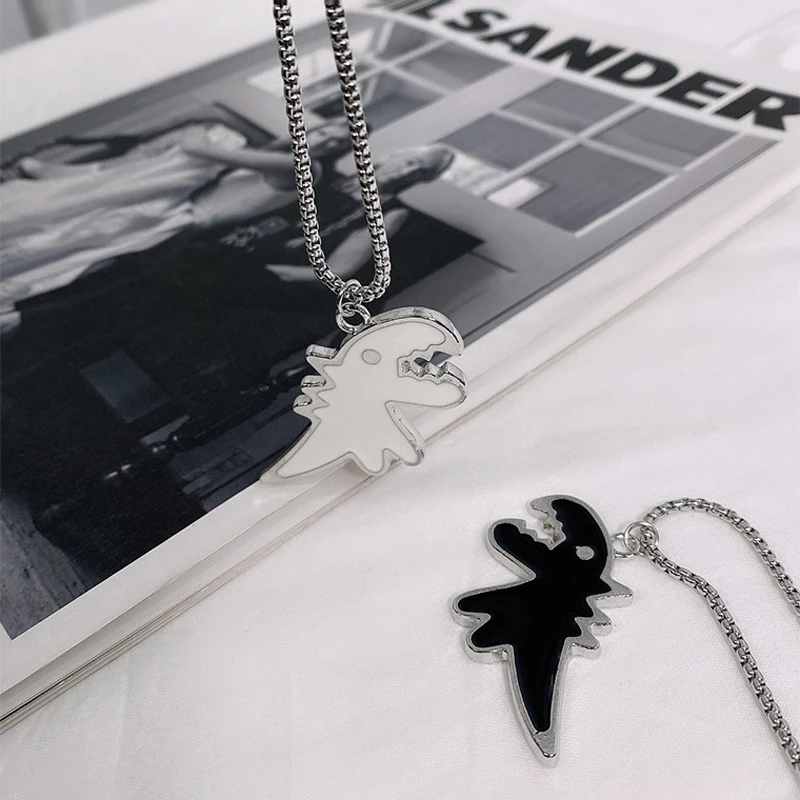 Cute Dinosaur Couple Necklace Lovers Paired Pendants Friends Stainless Steel Neck Chain Hiphop Punk Collar for Men Women Jewelry