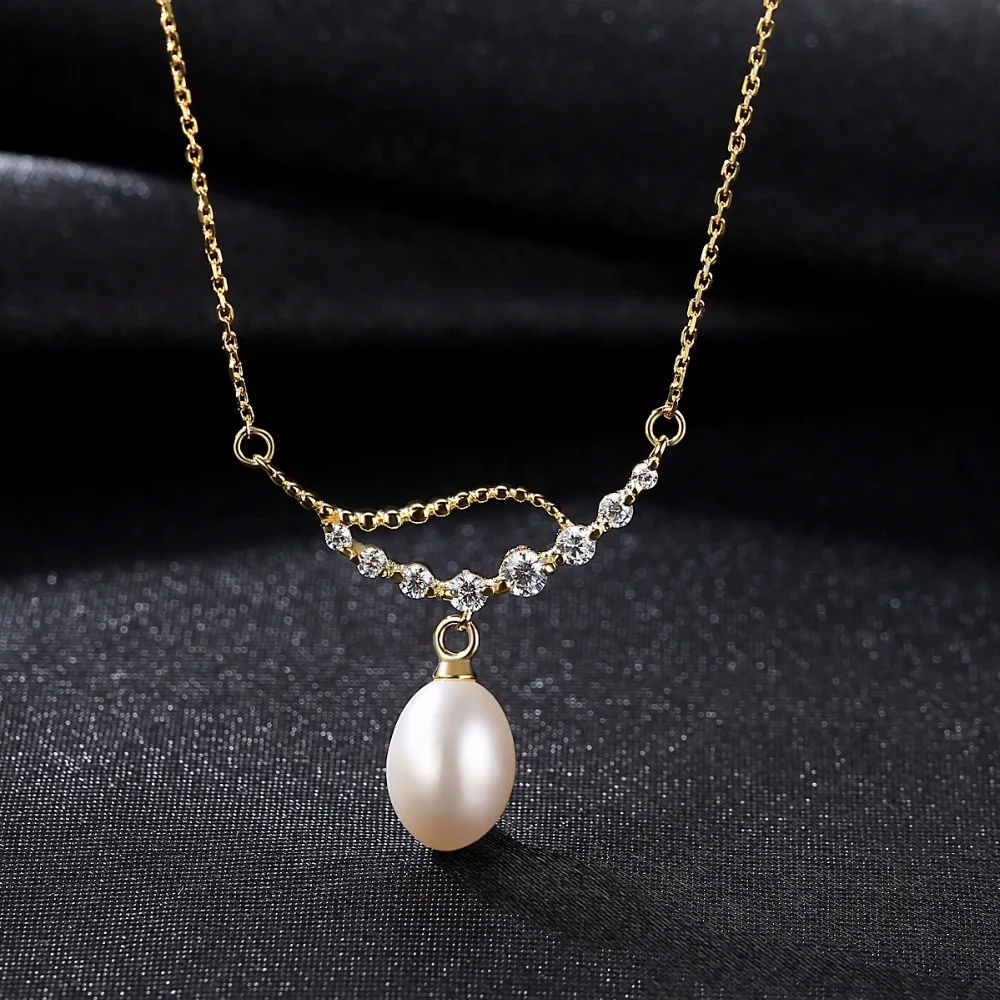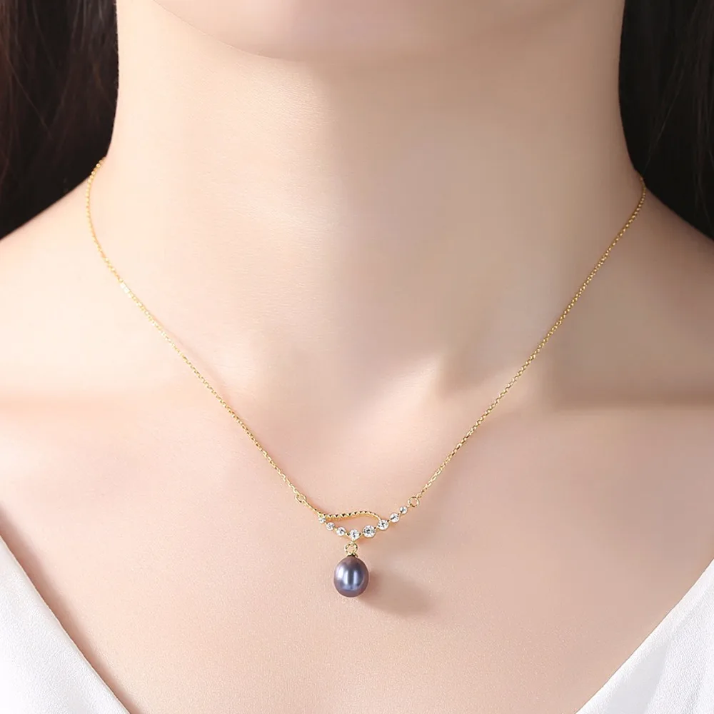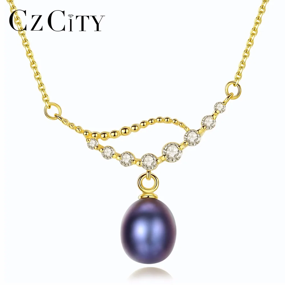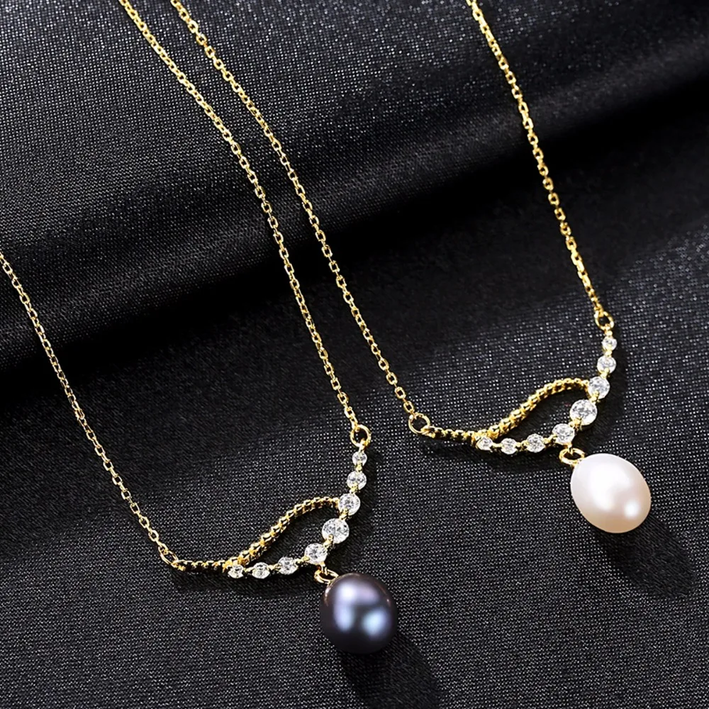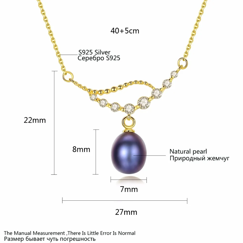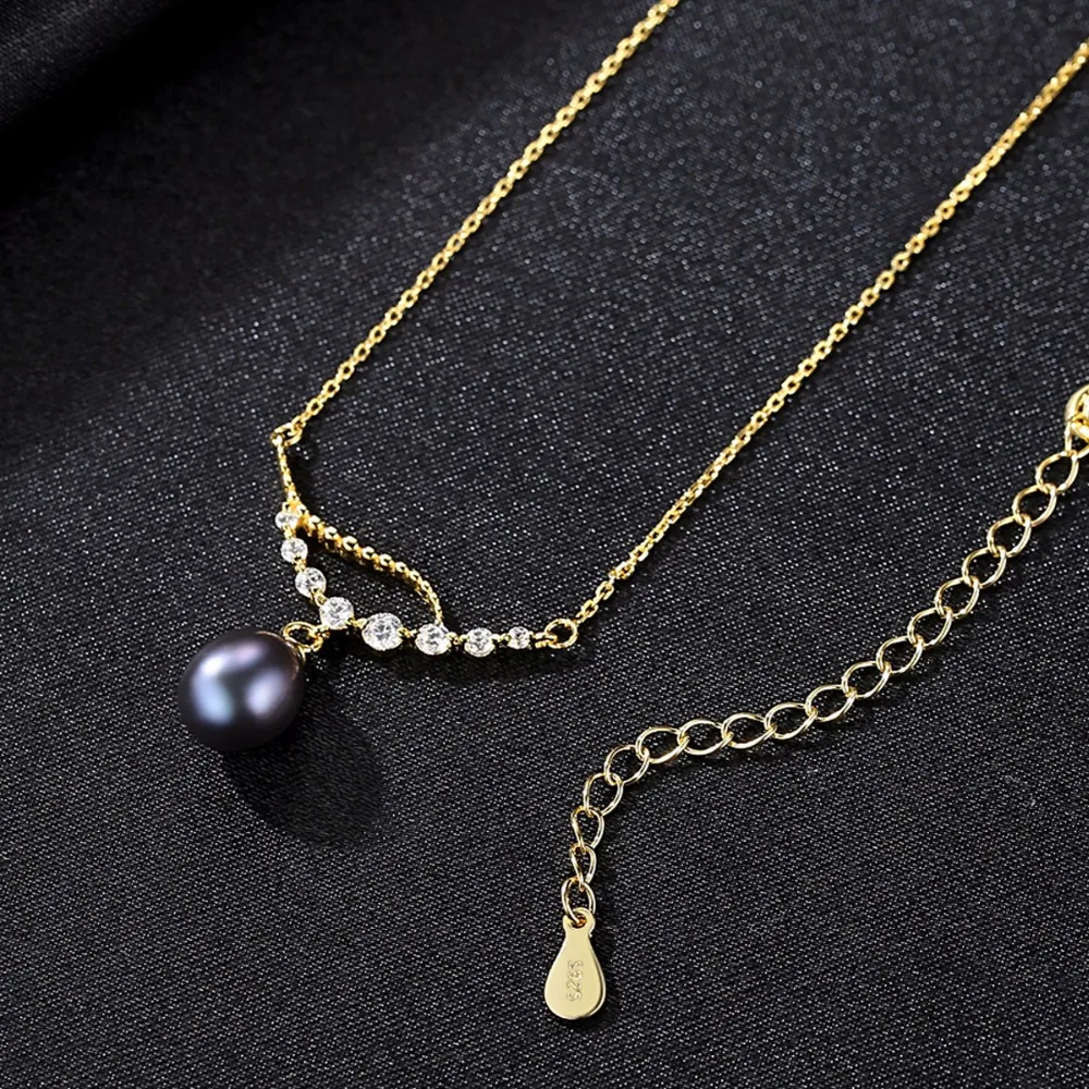 Clear CZ With 8-9mm Natural White Black Pearl Pendant 925 Sterling Silver Choker Necklace For Women S925 Silver Necklaces