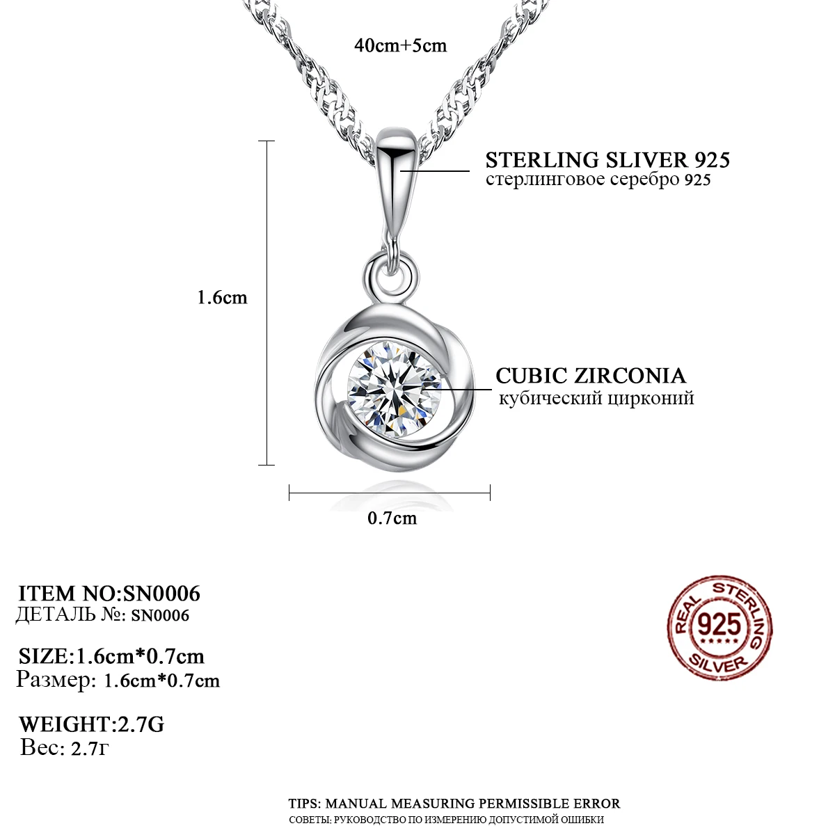 • Pendant Size: 1.6cm*0.7cm