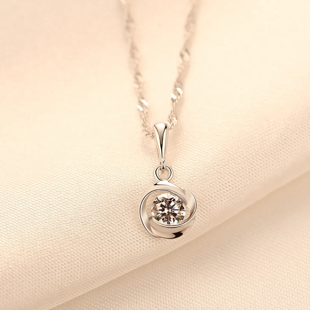 Chain Pendant Necklace Classic Rose Flower Cubic Zirconia 925 Sterling Silver Necklaces for Women Fine Jewelry Gift