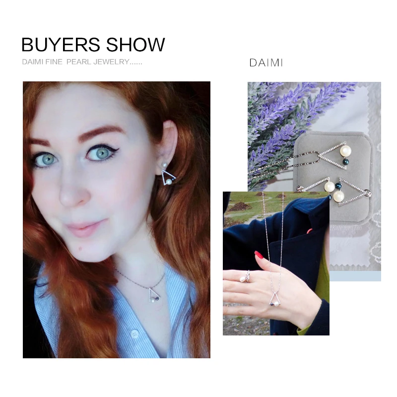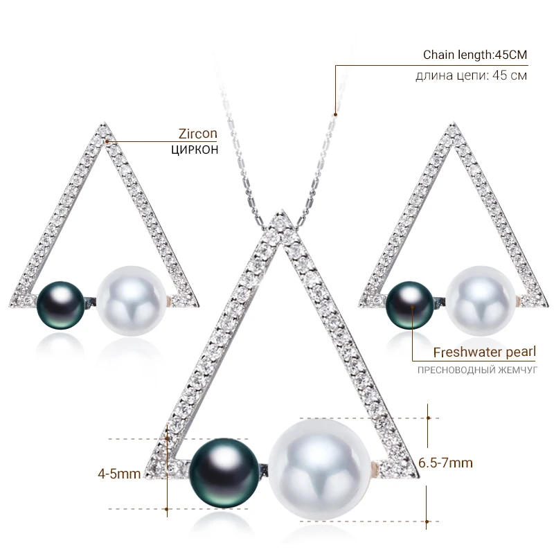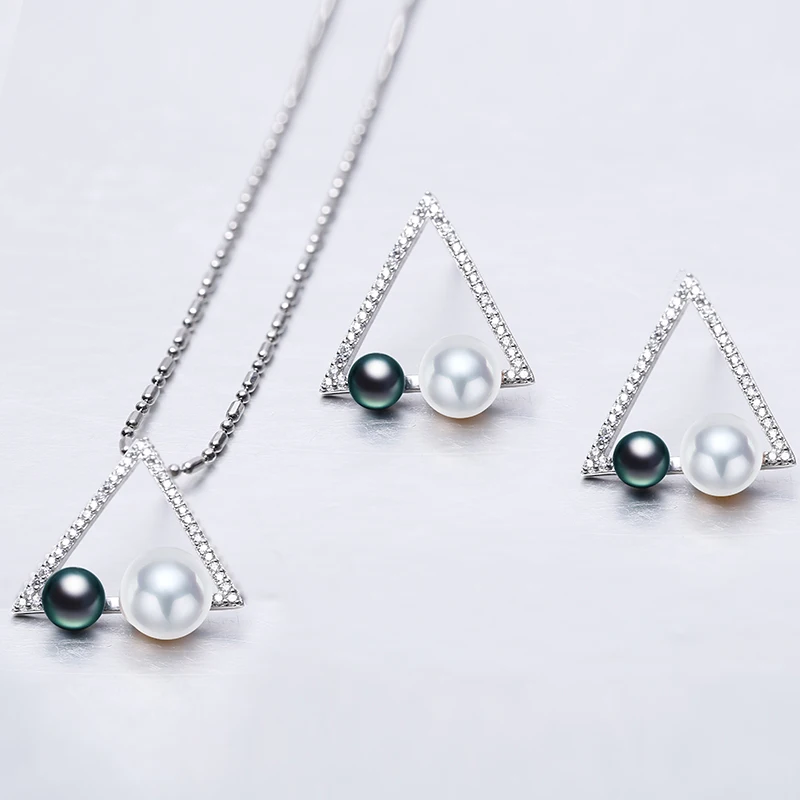 2020 New Geometry Jewelry Set 4-5mm,6.5-7mm Pearl Set Pendant Earrings White Black Triangle Jewelry