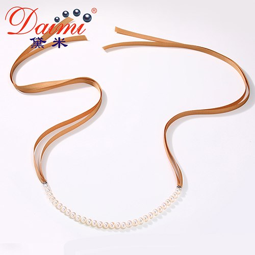 6-7mm Natural Pearl Necklace 99cm DIY Style Silk Ribbon Necklace