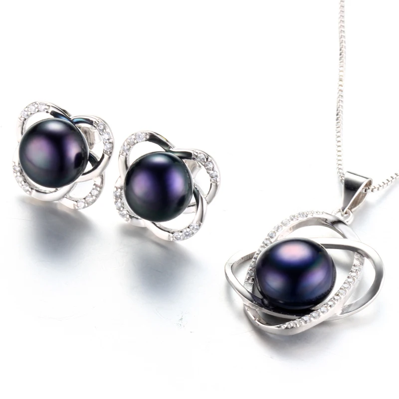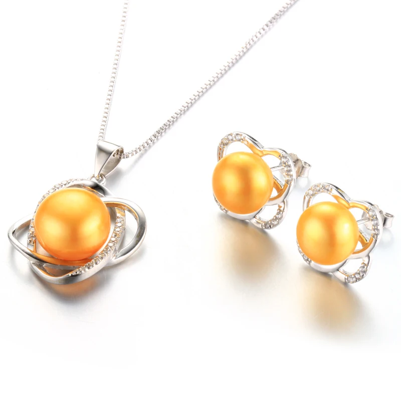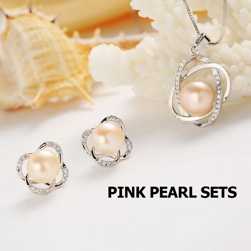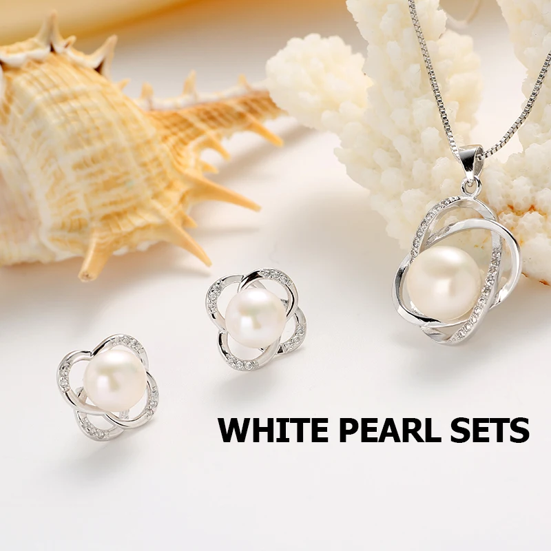2020 Top Quality Trendy Cross 925 Sterling Silver Jewelry Sets Pendant Necklace & Earring Pearl Pendant Earrings