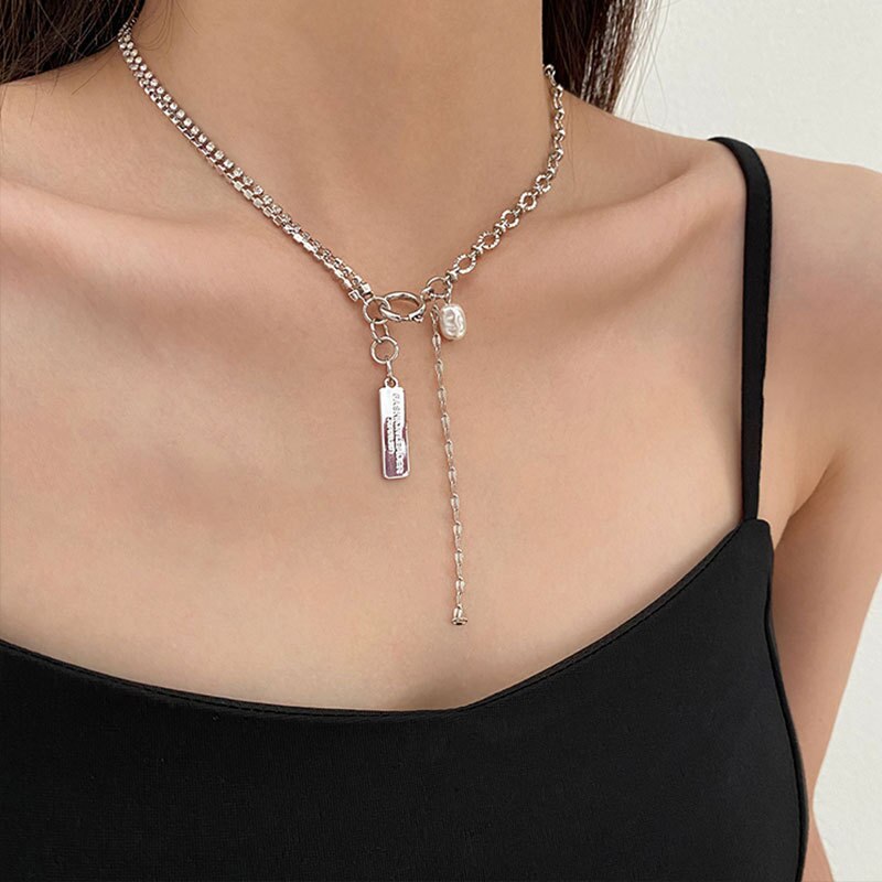 Design Double-Layer Necklace for Women 2021 Titanium Steel Ins Hip Hop Clavicle Chain Light Accessories