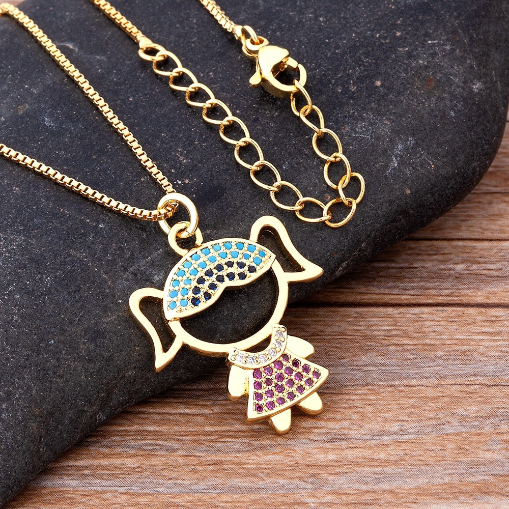 Design Girl Boy Pendant Women Girls Kids Copper Zircon Chain Necklace Charm Party Birthday Jewelry Gifts