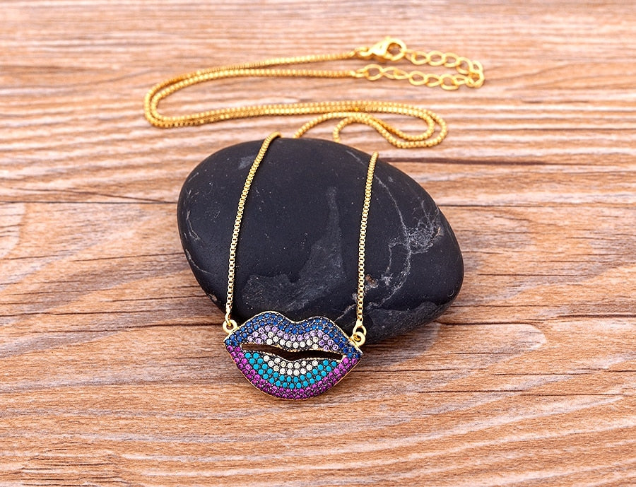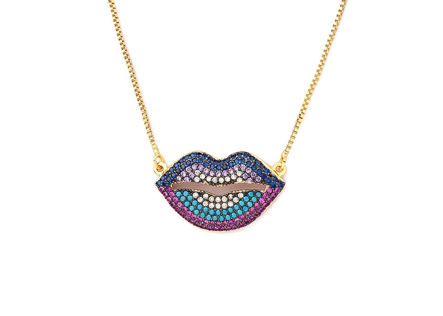 Design Sexy Lips Pendant Necklace Gold Plated Copper Zircon Jewelry Colorful Chain For Women Hip Hop Party Birthday Gifts