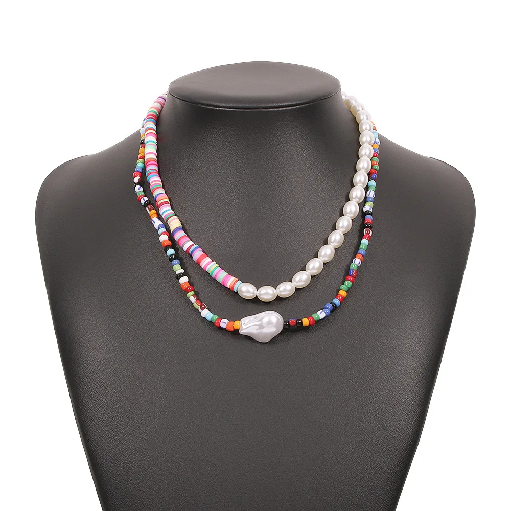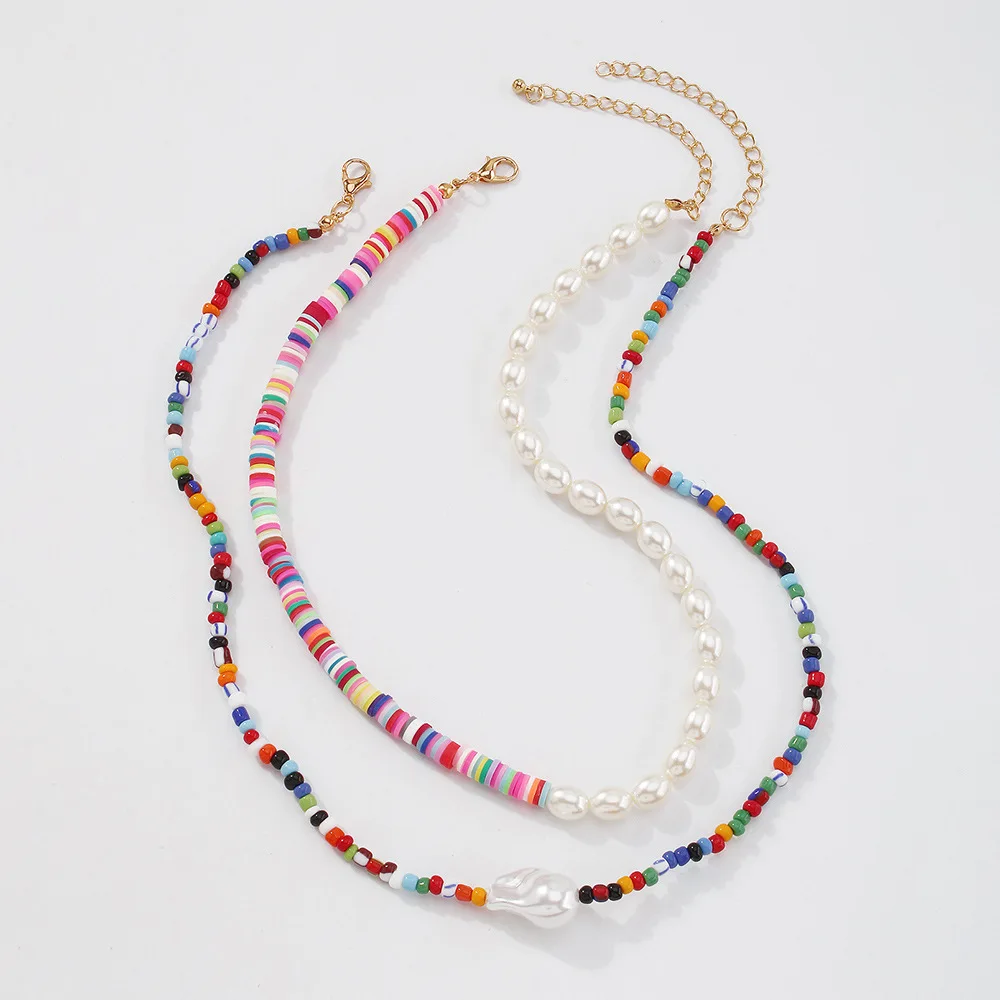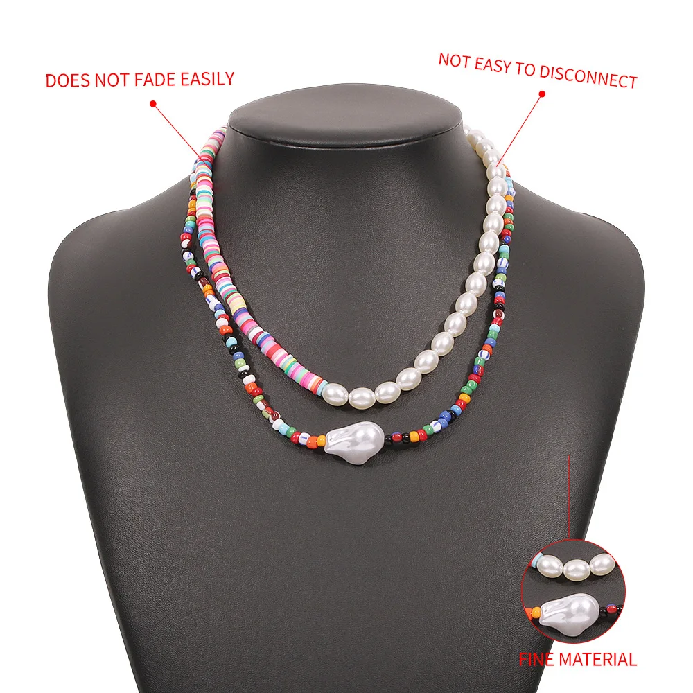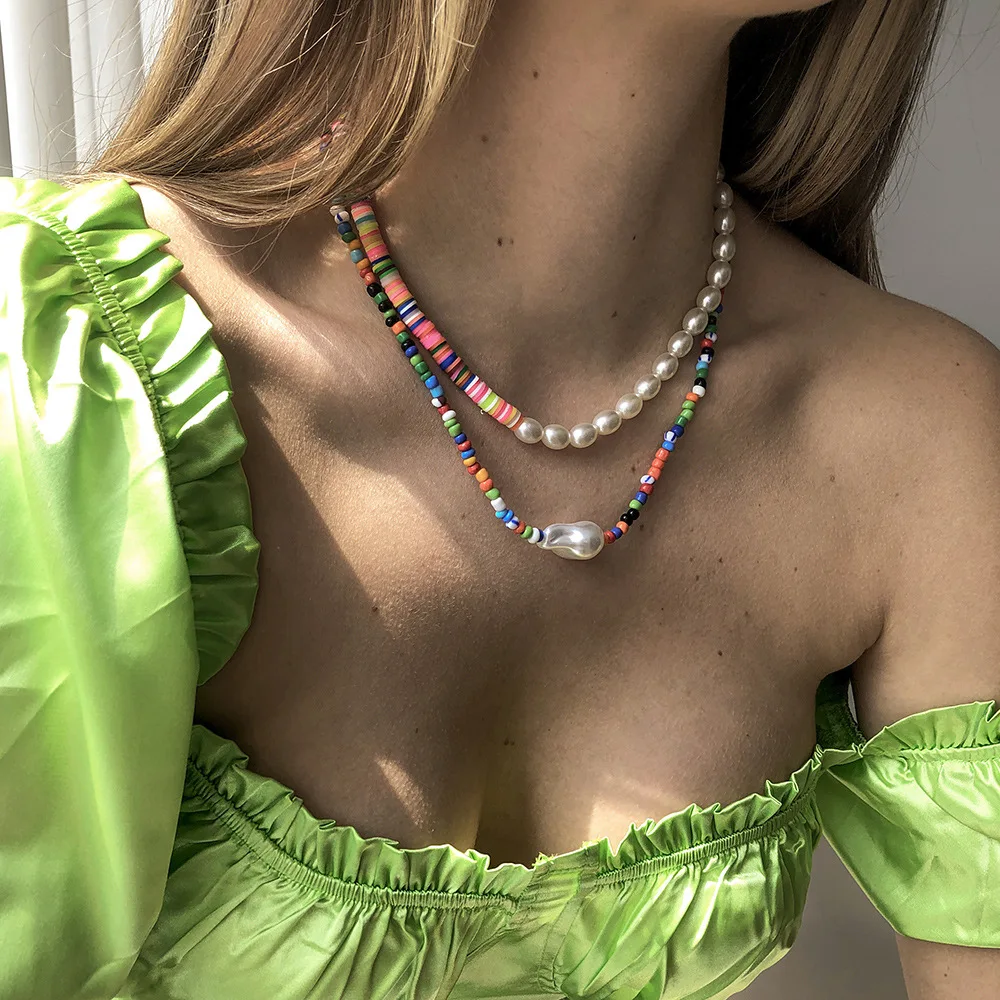 DIEZI Bohemian Ethnic Soft Clay Multicolor Acyrlic Beads Choker Necklace Women Pearl Chain Necklaces Sweet Girls Jewelry