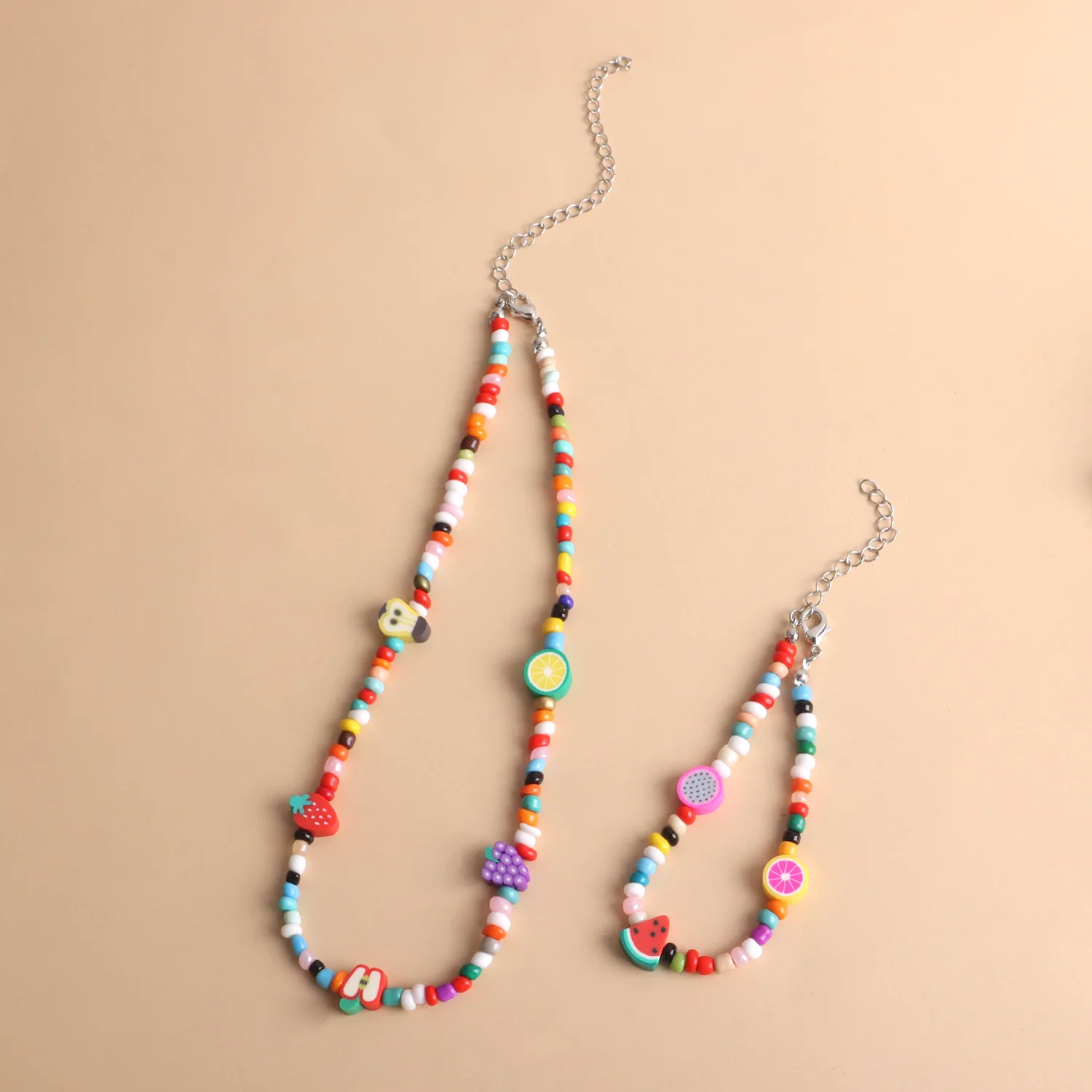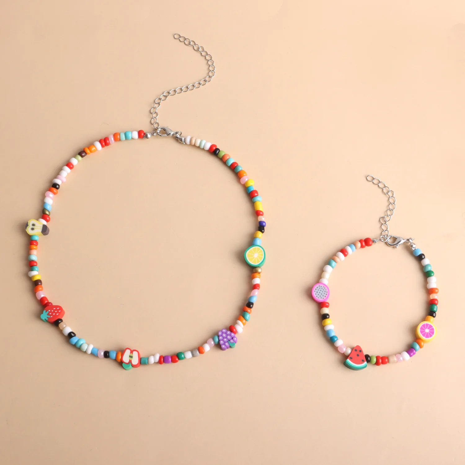 DIEZI Multicolor Soft Clay Resin Beads Choker Necklace For Women Sweet Girls Bohemian Flower Fruit Beads Necklace Jewelry