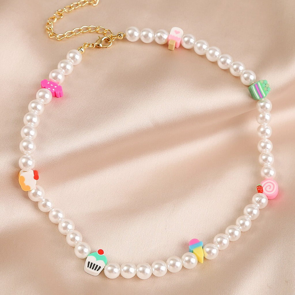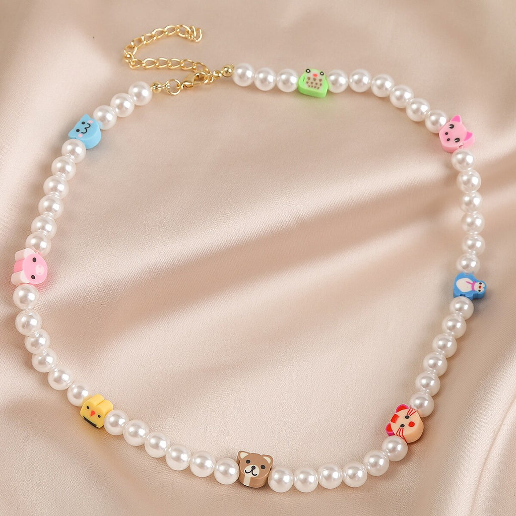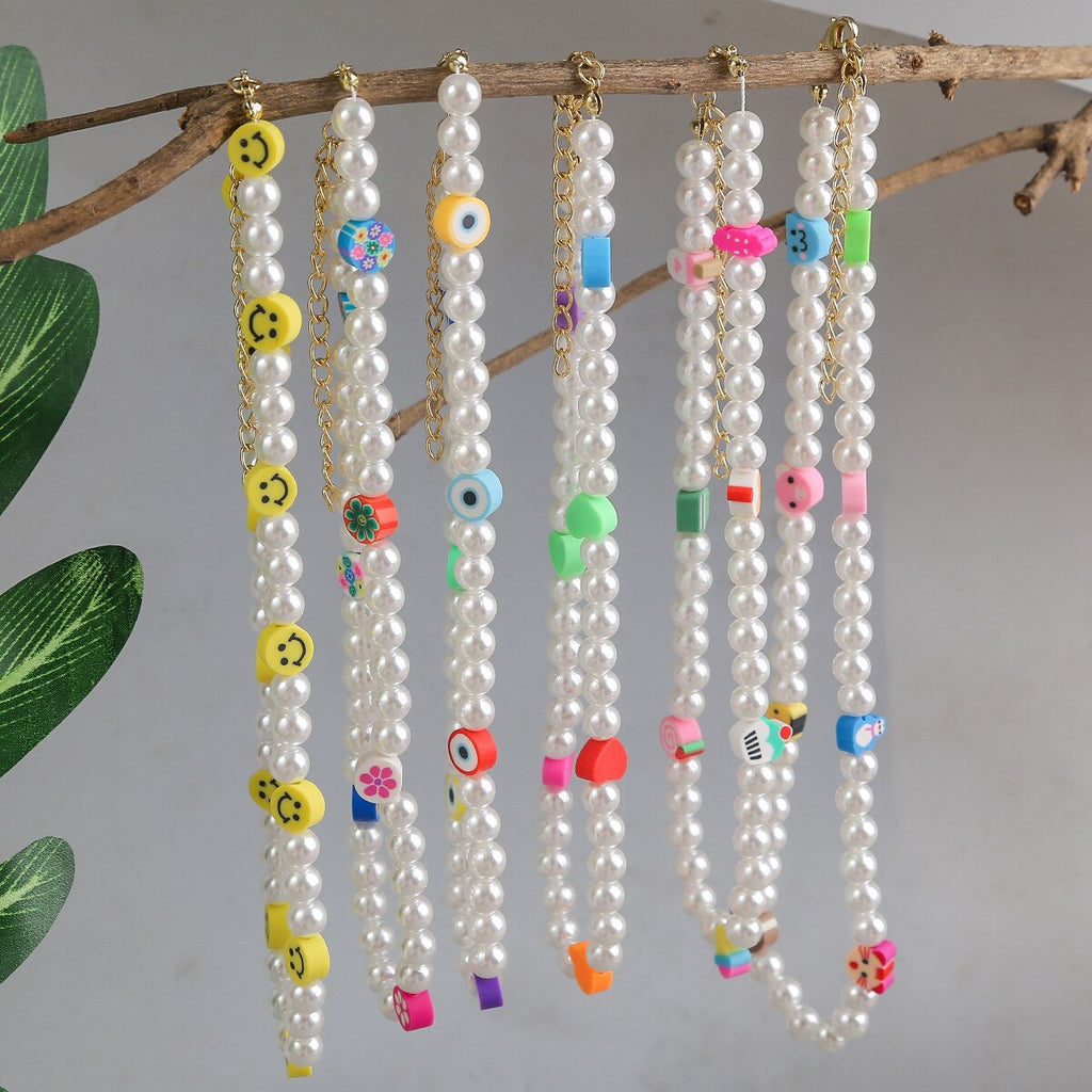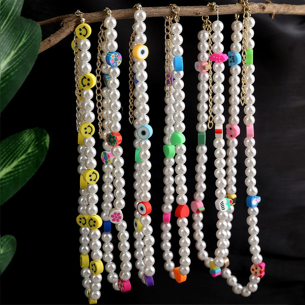 DIEZI Summer Ethnic Imitation Pearl Choker Necklace For Women Girls Sweet Soft Clay Beads Chain Necklace Flower Heart Jewelry