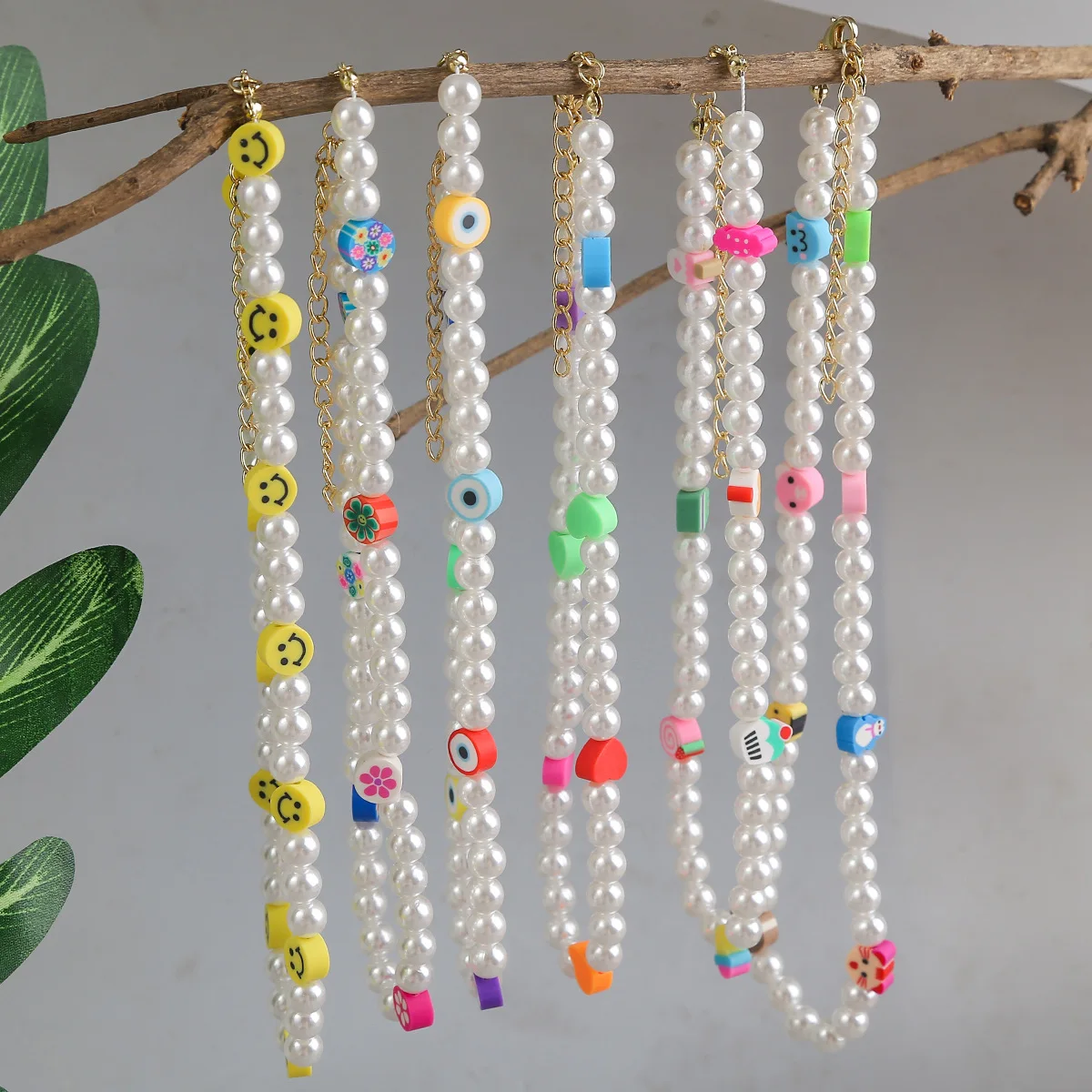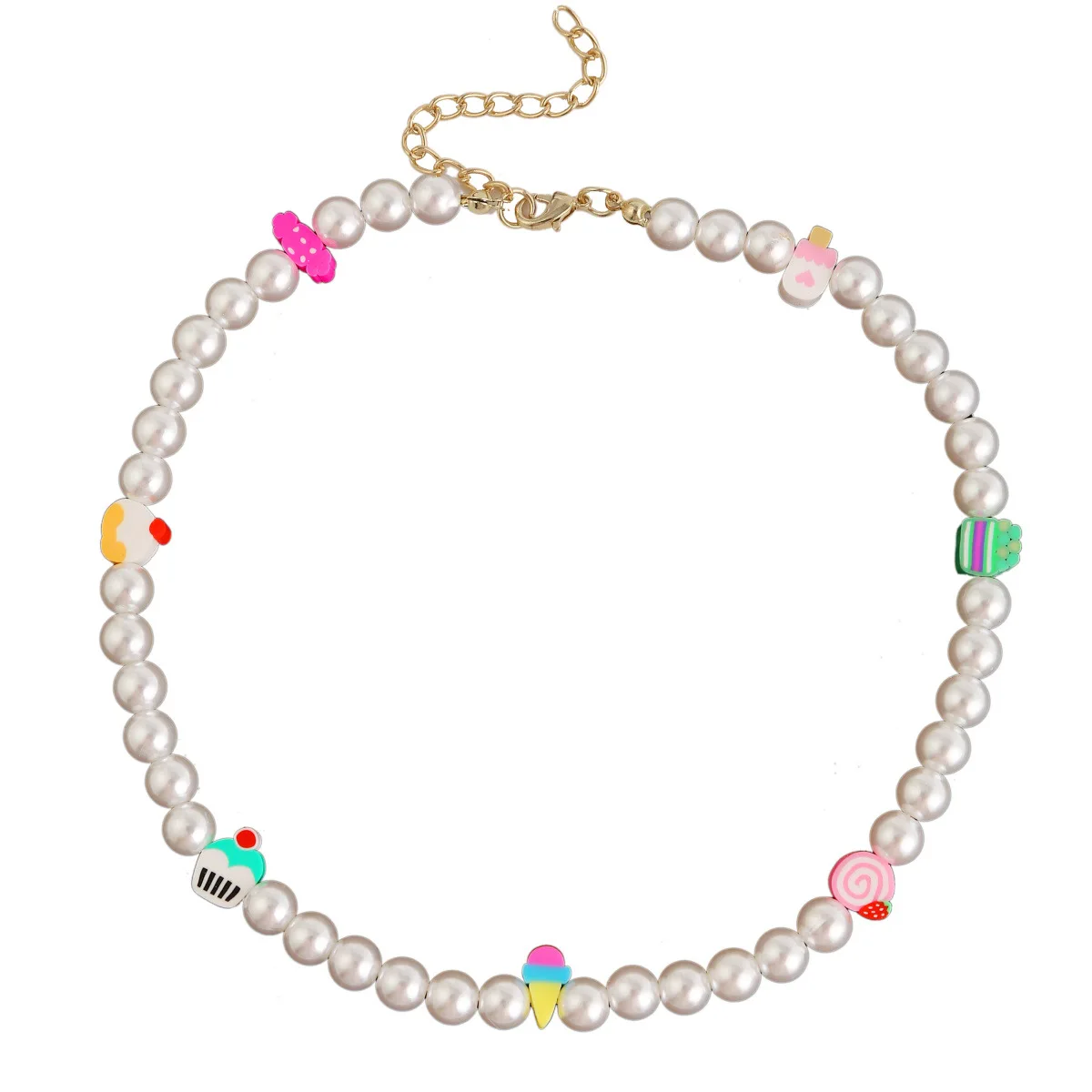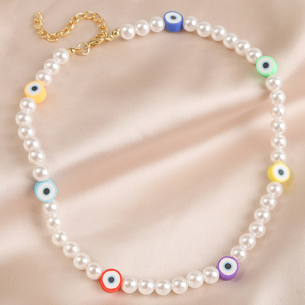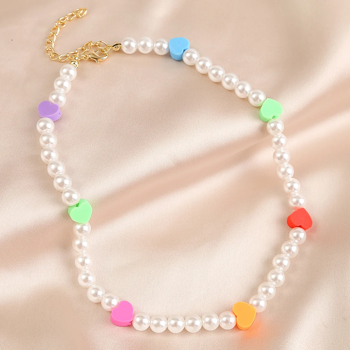 DIEZI Summer Ethnic Imitation Pearl Choker Necklace For Women Girls Sweet Soft Clay Beads Chain Necklace Flower Heart Jewelry