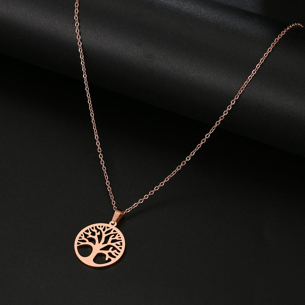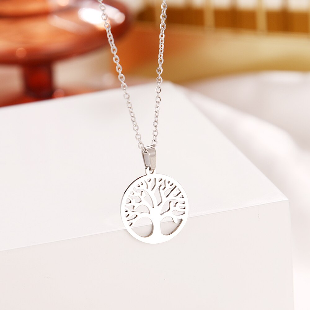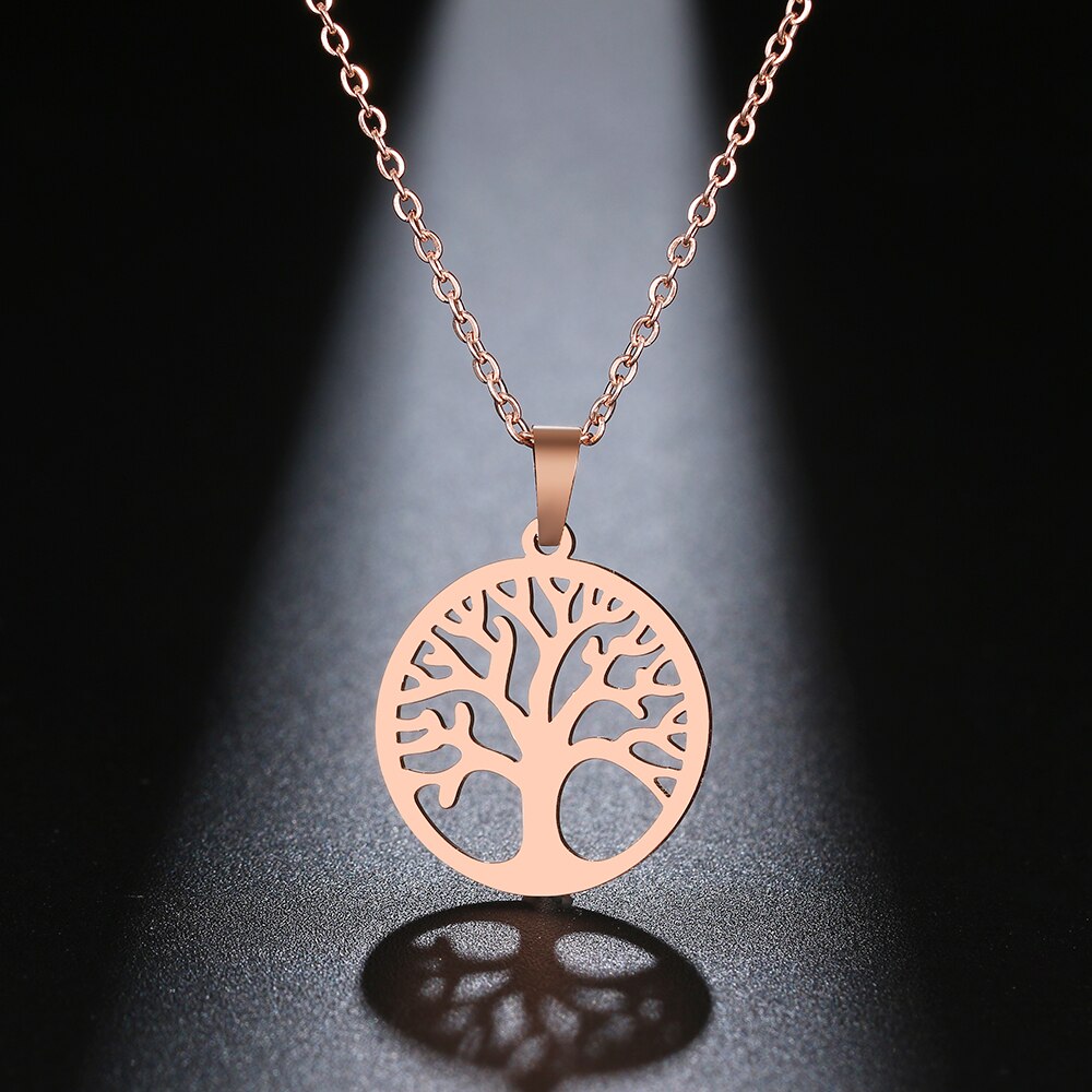 DOTIFI 316L Stainless Steel Necklace Tree of Life Round Pendant Necklaces Bijoux Collier Elegant Women Girl Jewelry Gifts