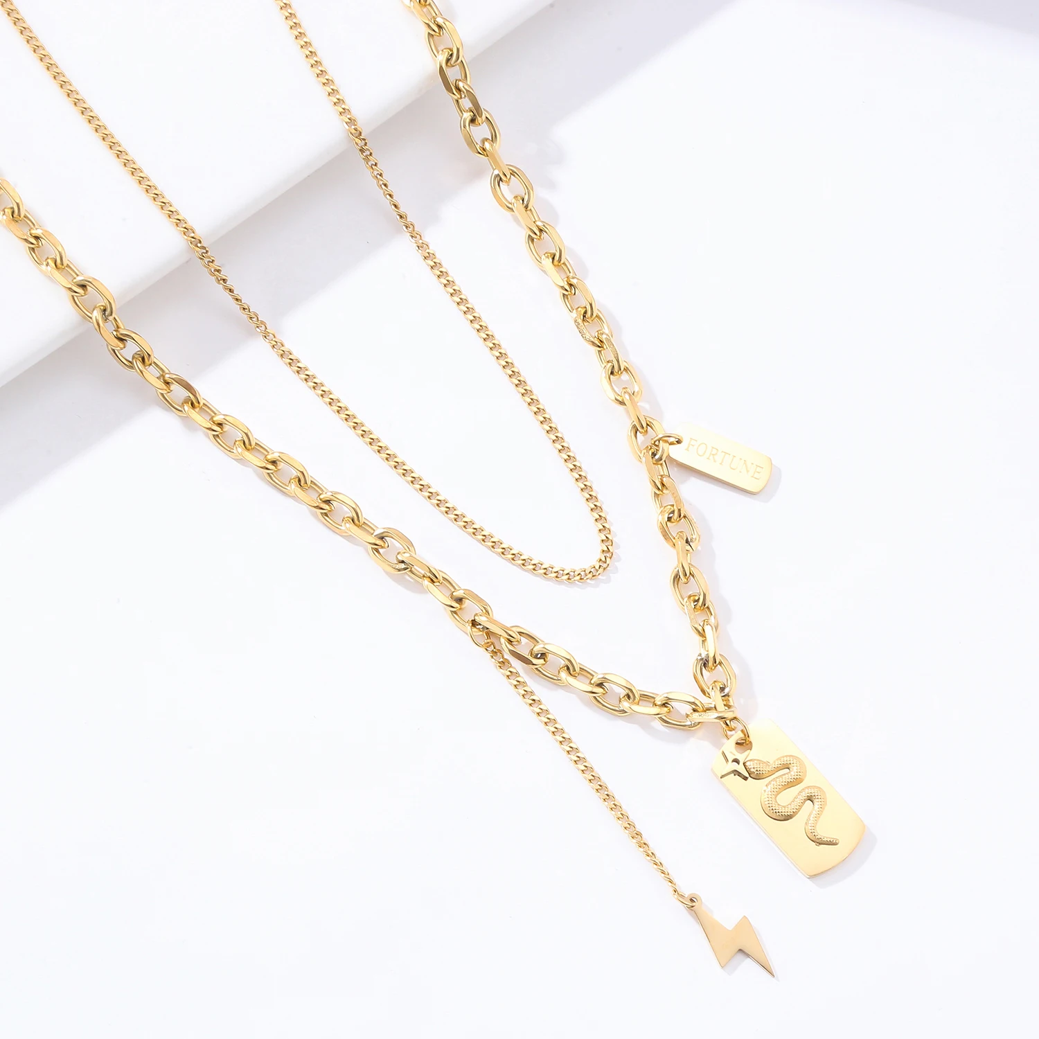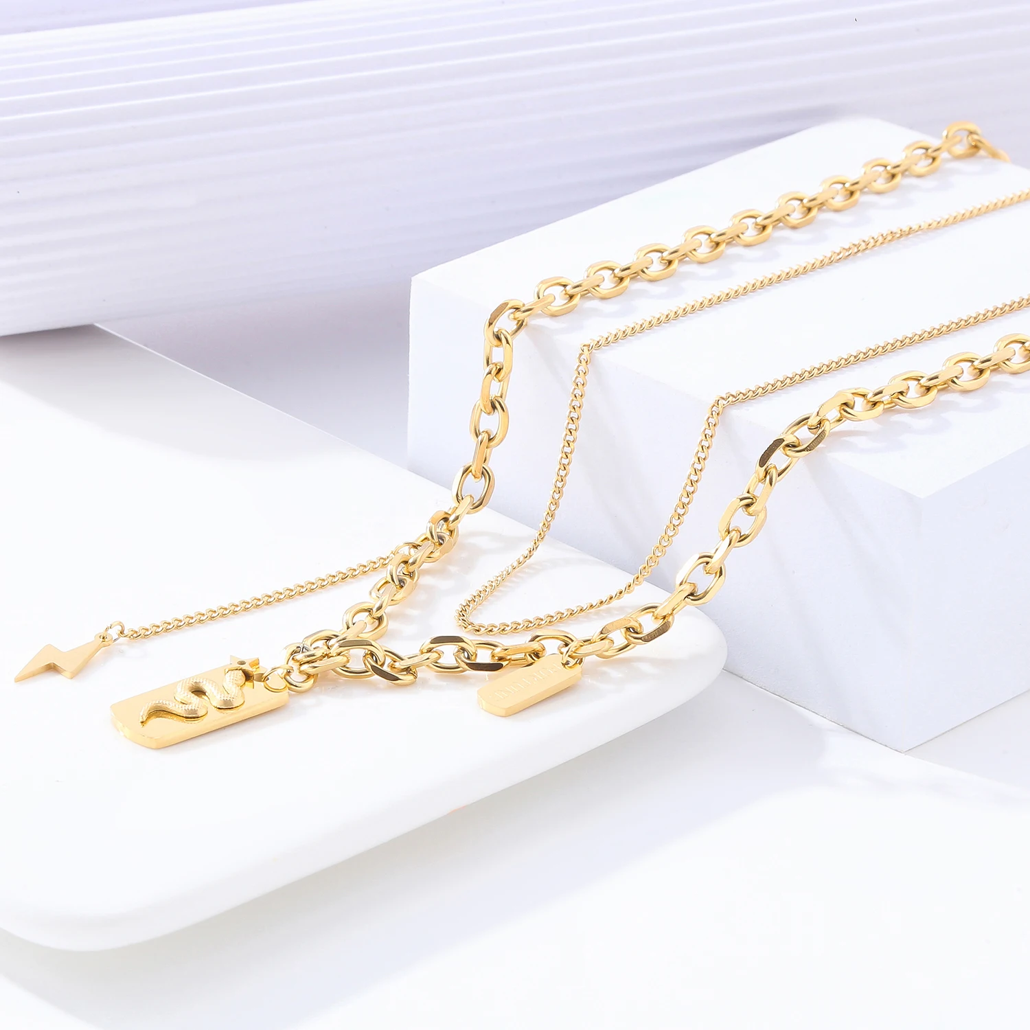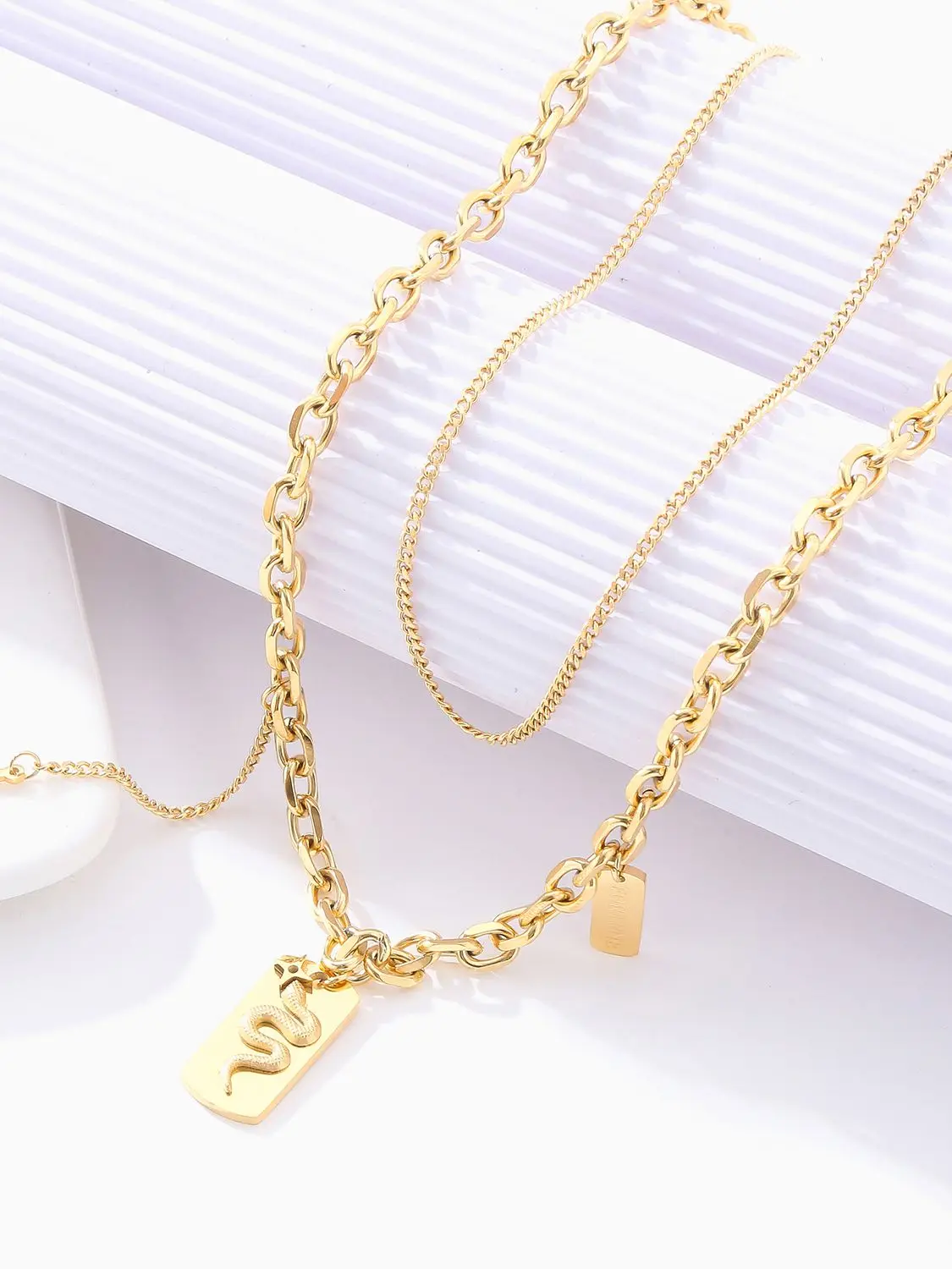 Double Layer Hollow Thick Clavicle Chain Stainless Steel Gold Plated Snake Necklace For Women Punk Hip-Hop Streetwear Jewelry