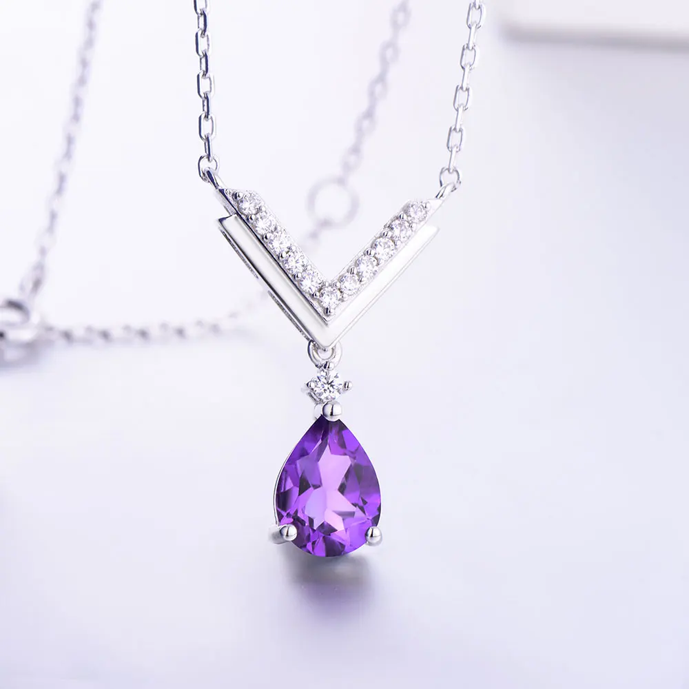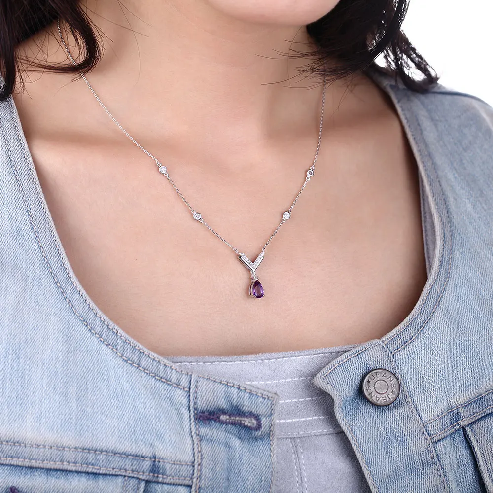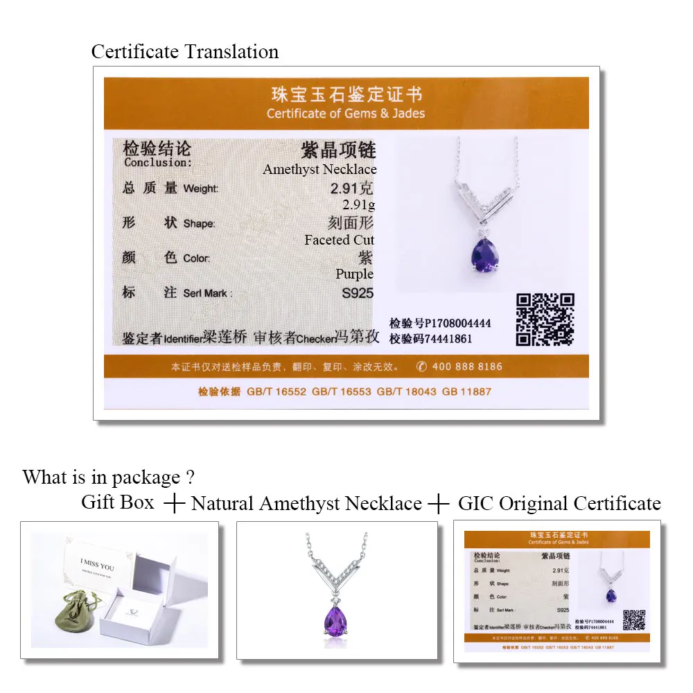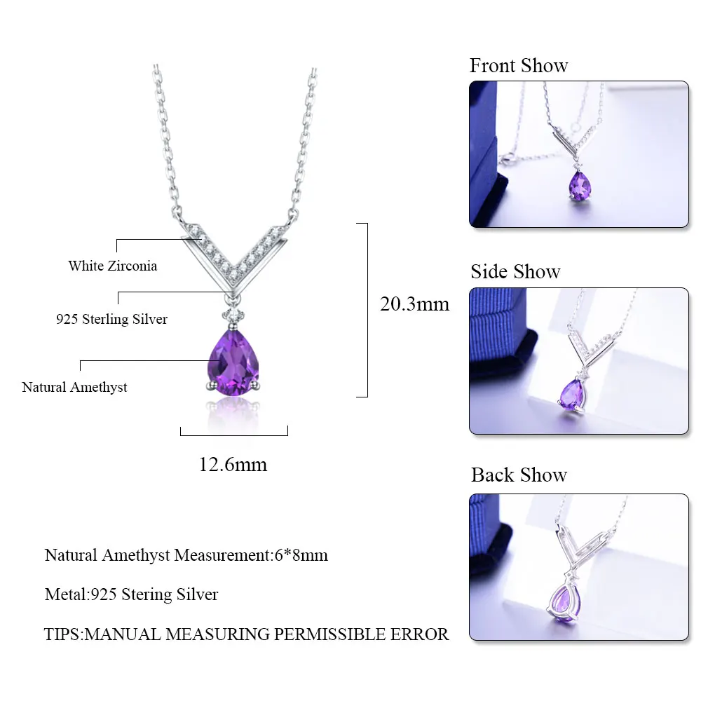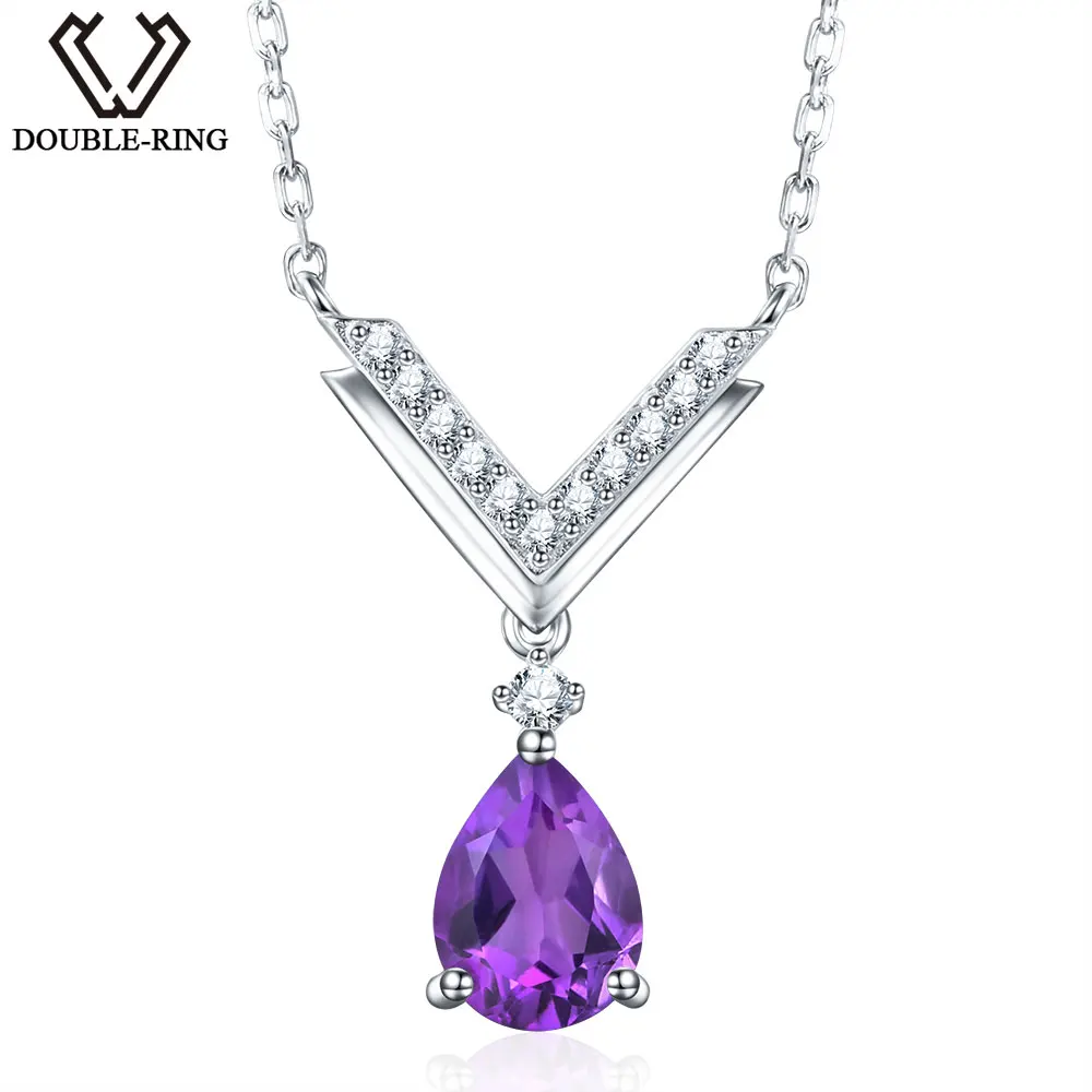 DOUBLE-R Classic 0.9ct Genuine Natural Amethyst Necklaces Pendants 925 Sterling Silver Fine wedding Jewelry For Women