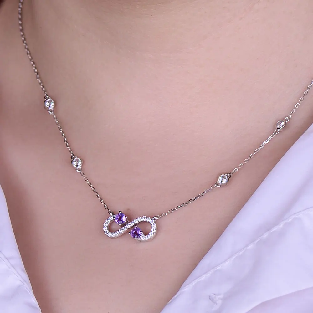 DOUBLE-R Natural Amethyst Necklaces Genuine 925 sterling silver jewelry Necklaces & Pendants fine wedding Jewelry for women