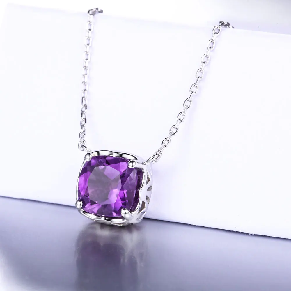 DOUBLE-R Women Natural High Quality Amethyst Necklaces Genuine Solid 925 Sterling Silver Purple Fine Wedding Jewelry for women