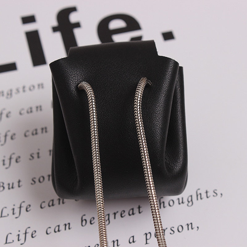 [EAM] Women Black Mini-bag Split Chain Long Necklace Temperament Tide All-match Spring Autumn 2022 19A-a498