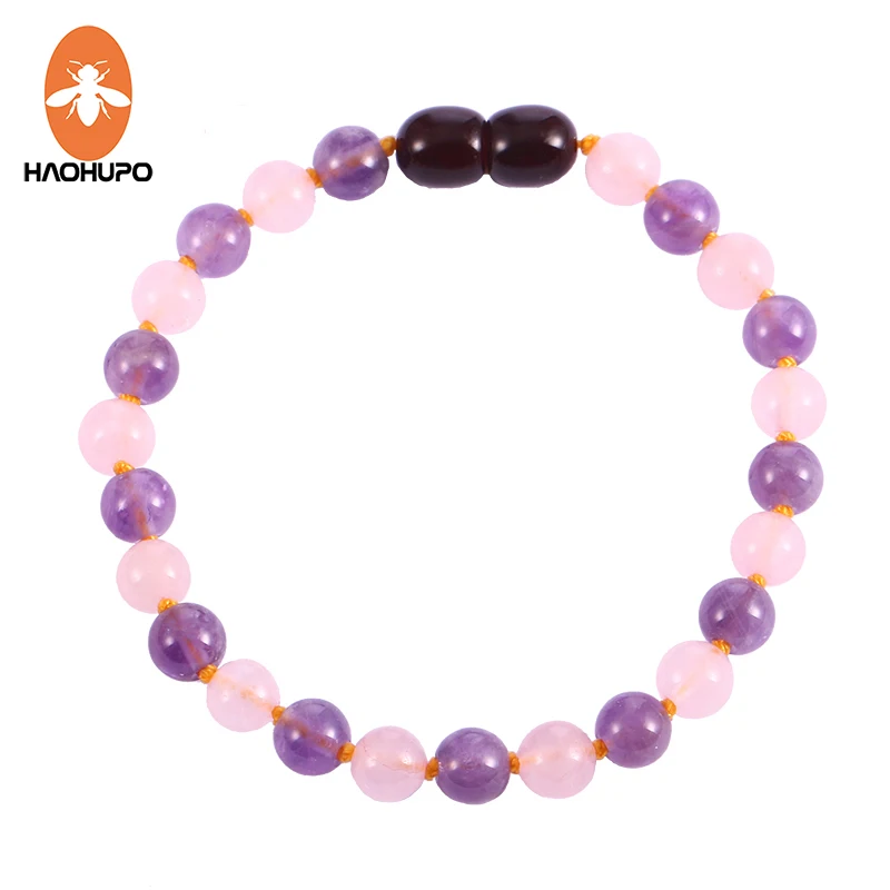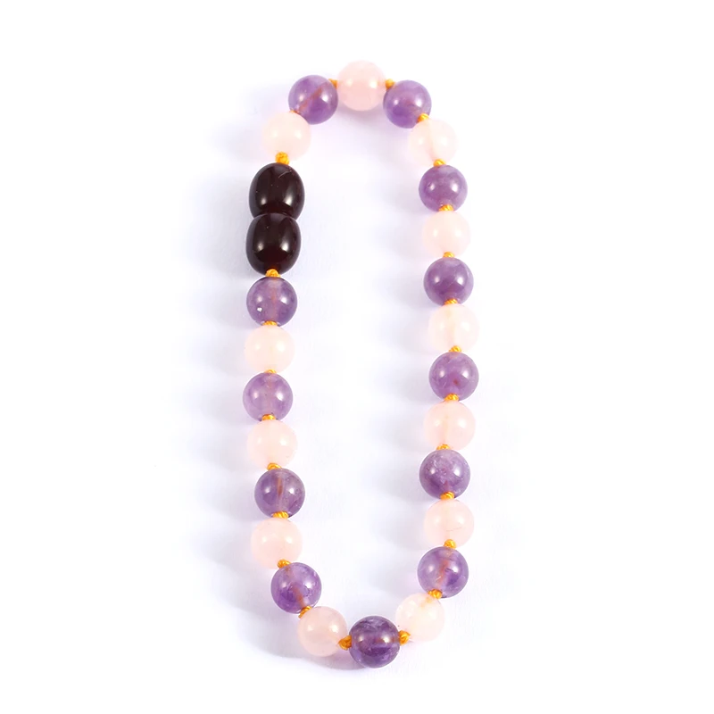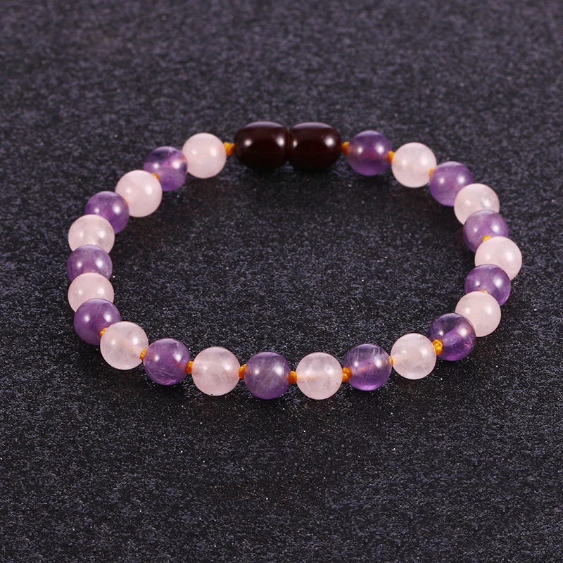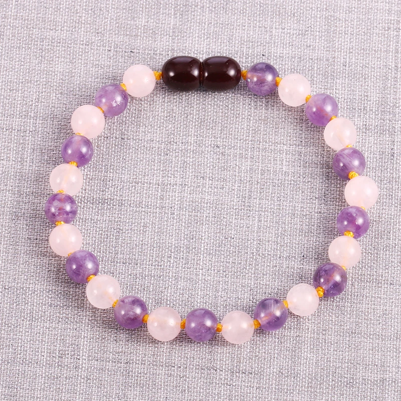 Rose Quartz Amethyst Bracelet Natural Stone Jewelry Thread Clasp 6mm Round Stone Bracelet Necklace for Women Gifts