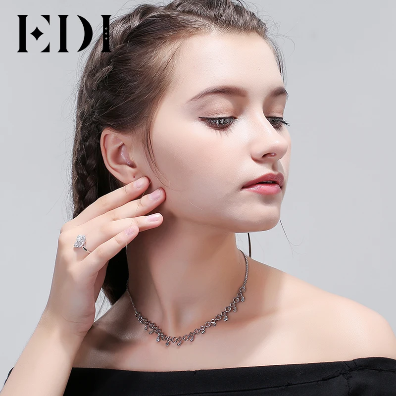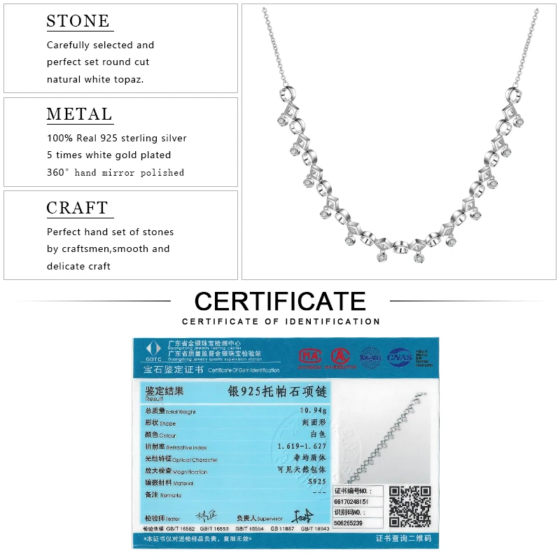 Woman 925 Sterling Silver Crystal Choker Necklace White Topaz Gemstone 38cm Tassel Pendants Necklaces For Women Wedding
