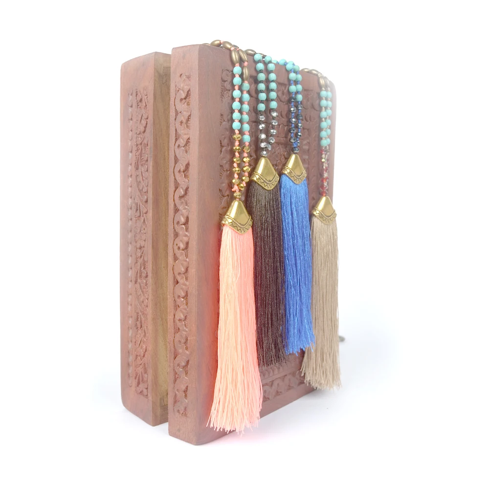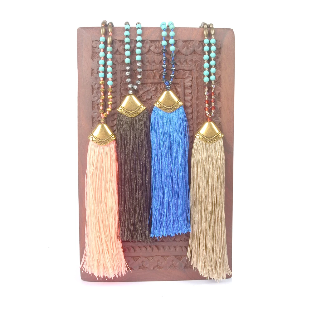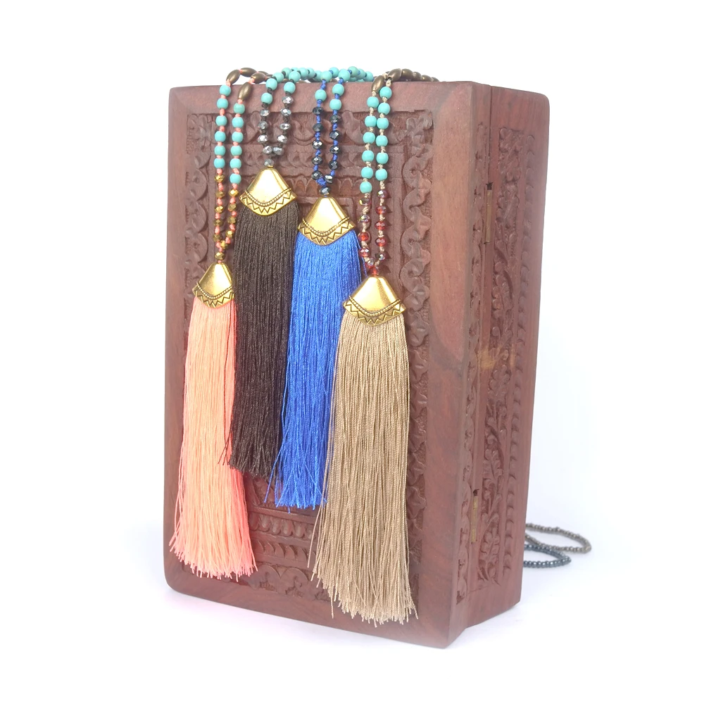 Ethnic Style Beaded Long Necklace Women Charm Mala Jewelry Yoga Tassel Pendant Clothes Accessories