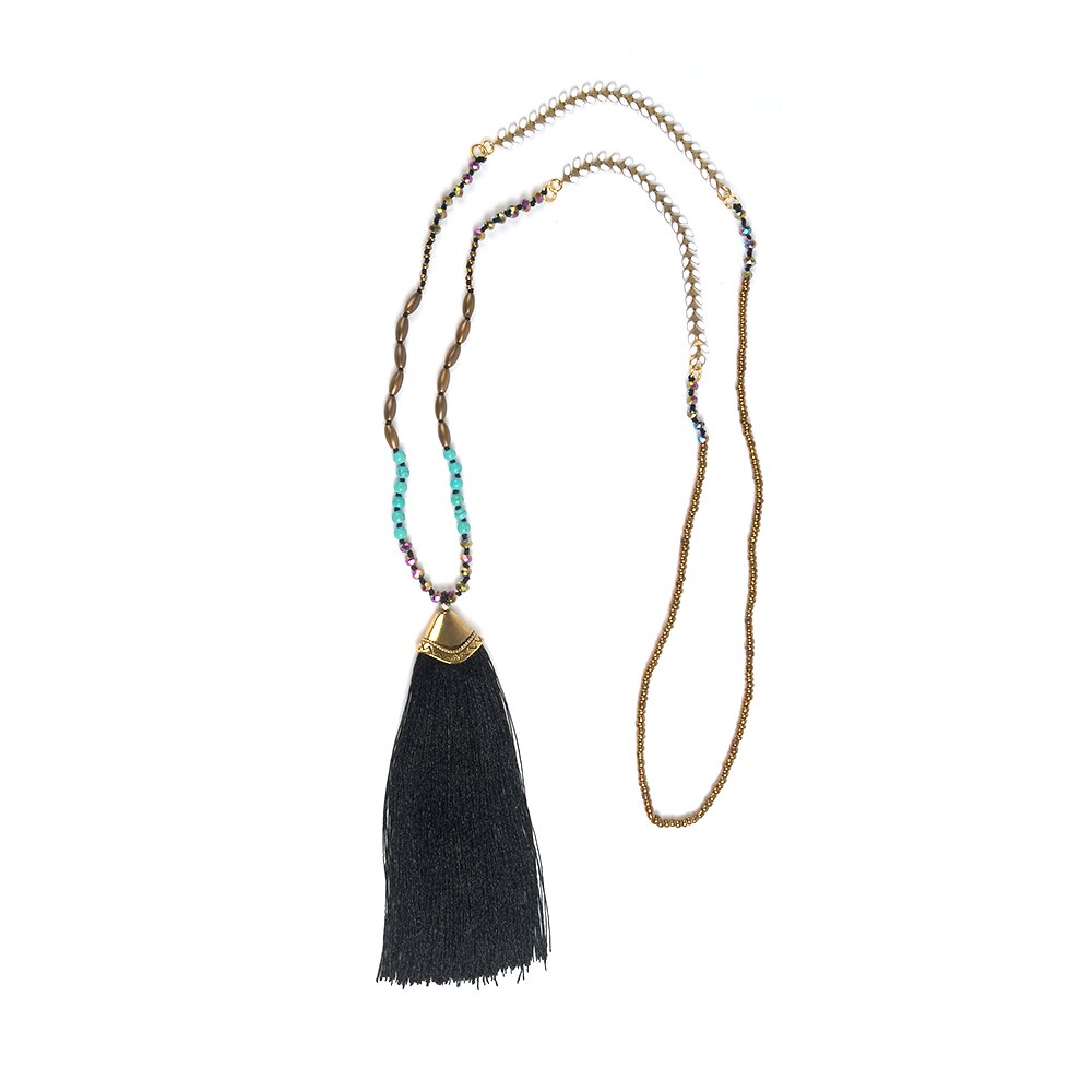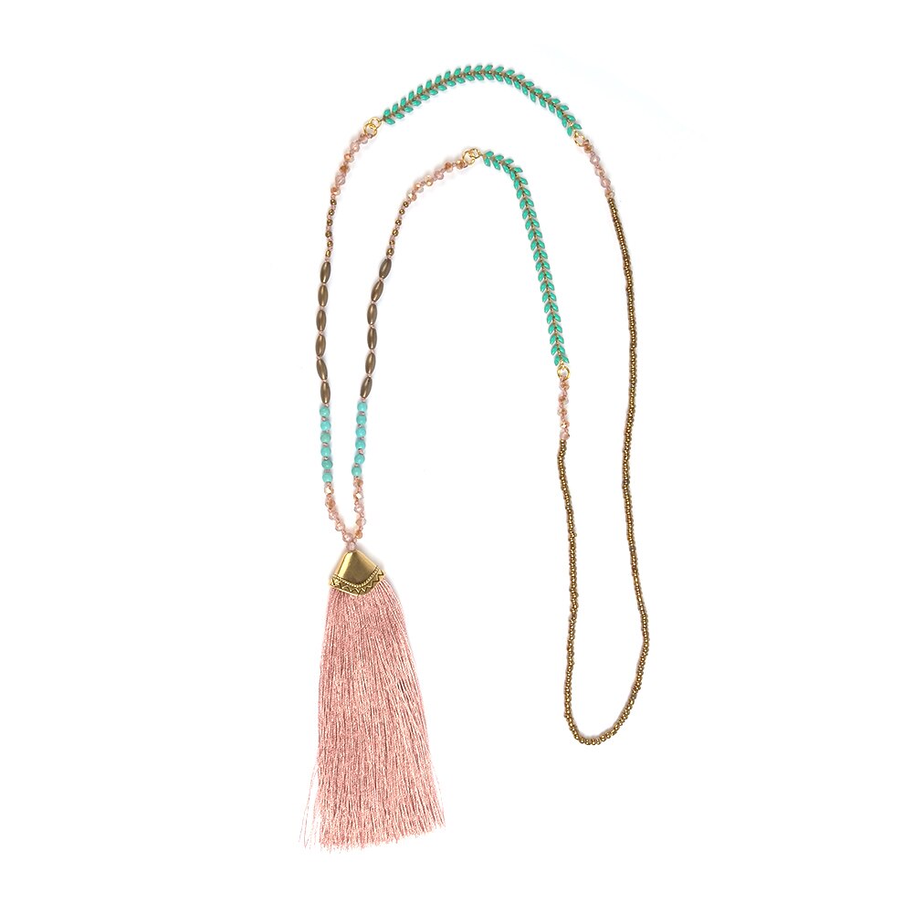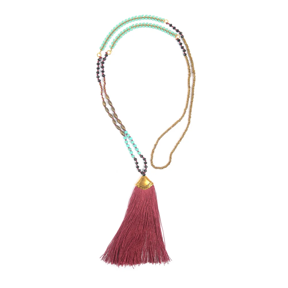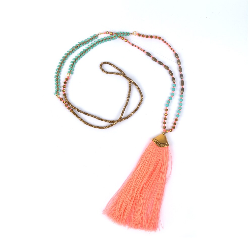 Ethnic Style Beaded Long Necklace Women Charm Mala Jewelry Yoga Tassel Pendant Clothes Accessories
