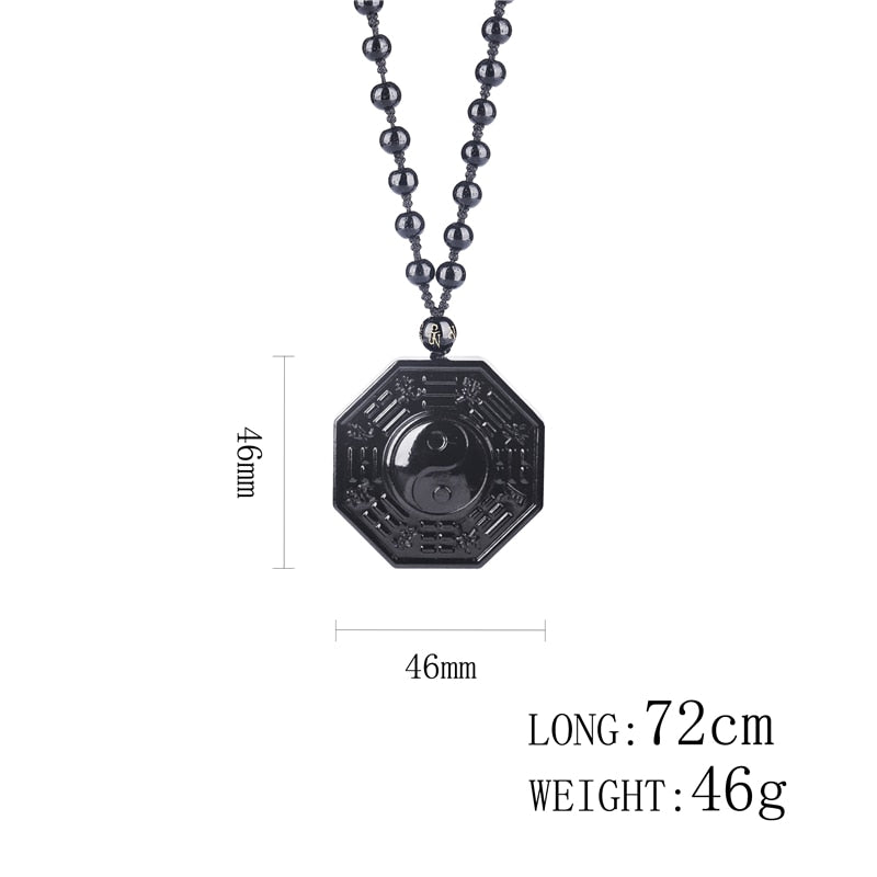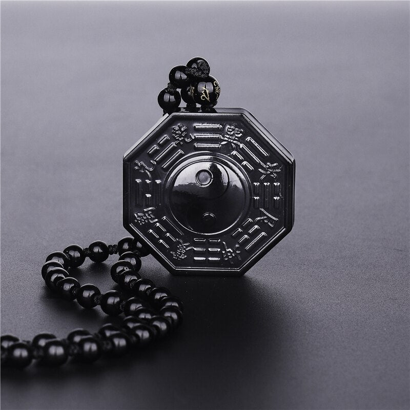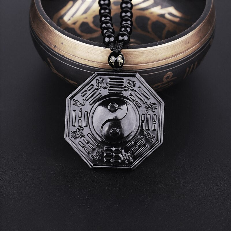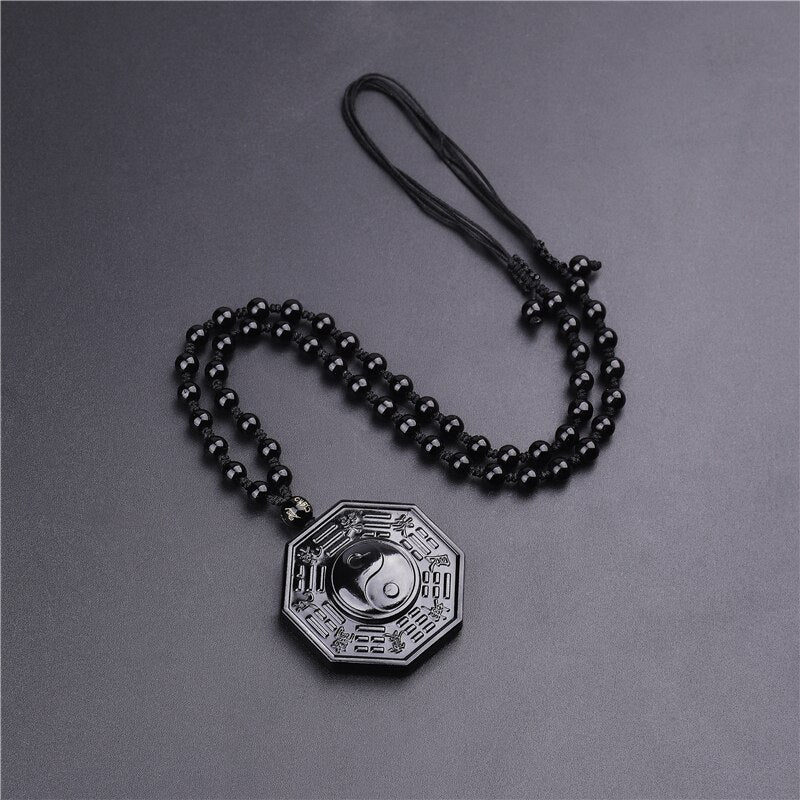Ethnic Style Black Obsidian Taiji Gossip Pendant Necklace Yin Yang Chinese BAGUA Bead Chain Necklace Jewelry For Woman Men
