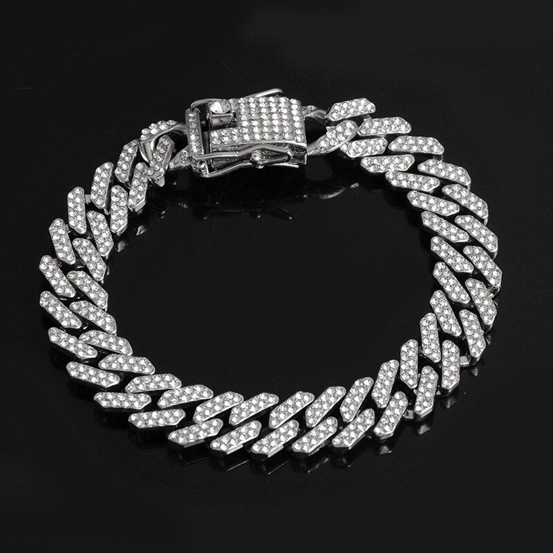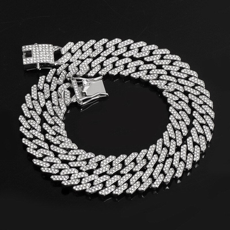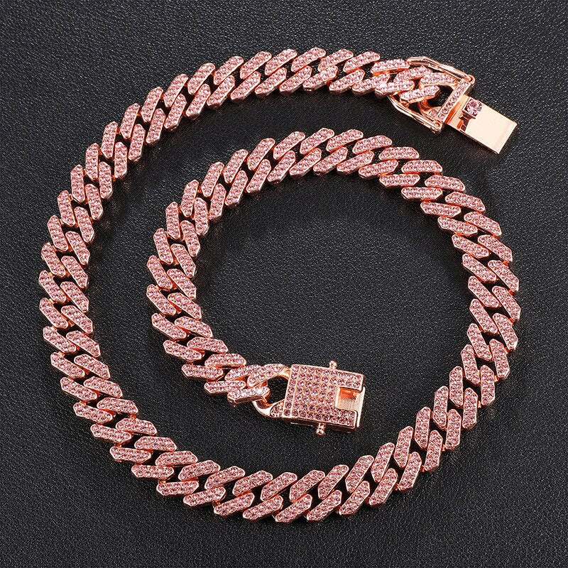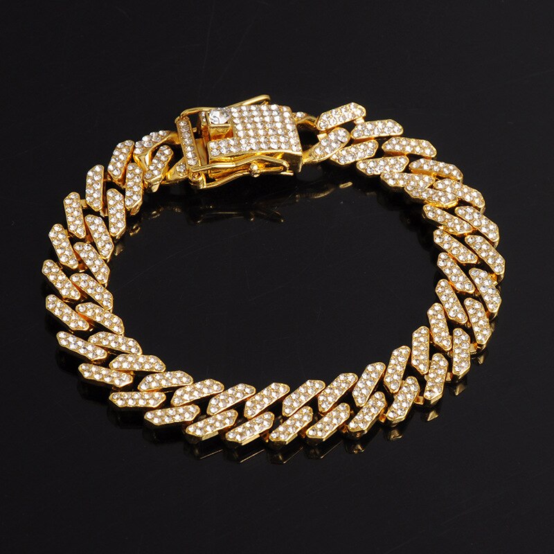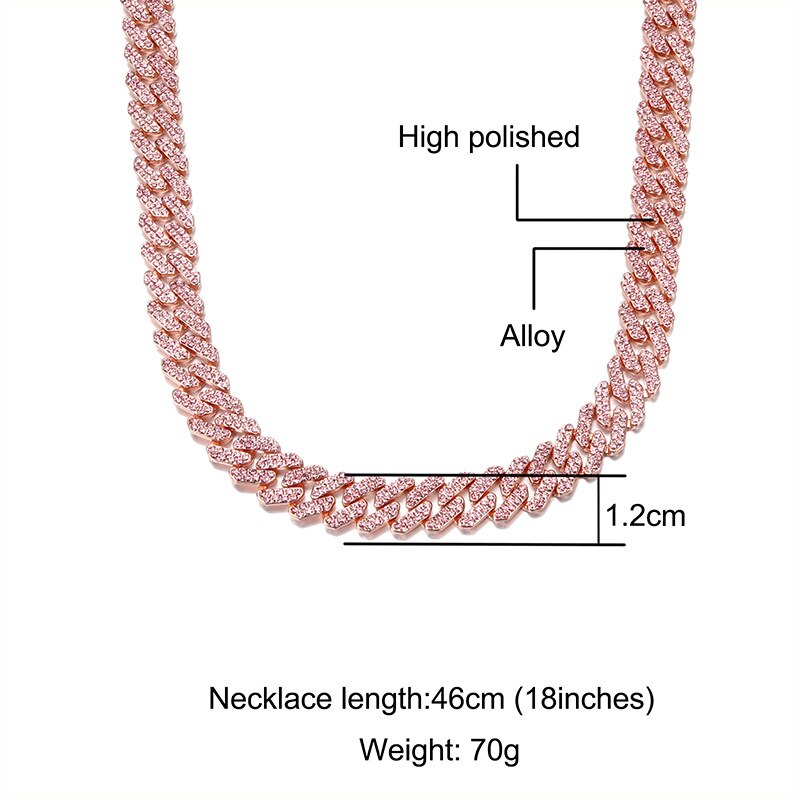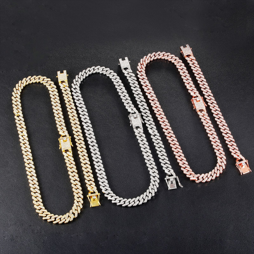 European and American 12mm Bar Cuban Chain Men's Necklace with Gold-plated Full Diamonds Rapper Hip-hop Male Choker Jewelry