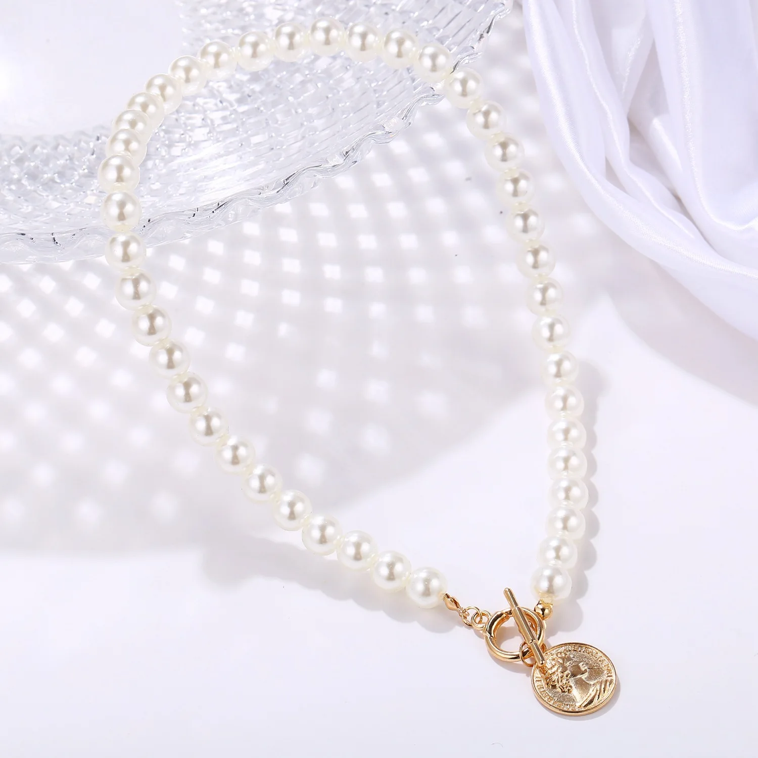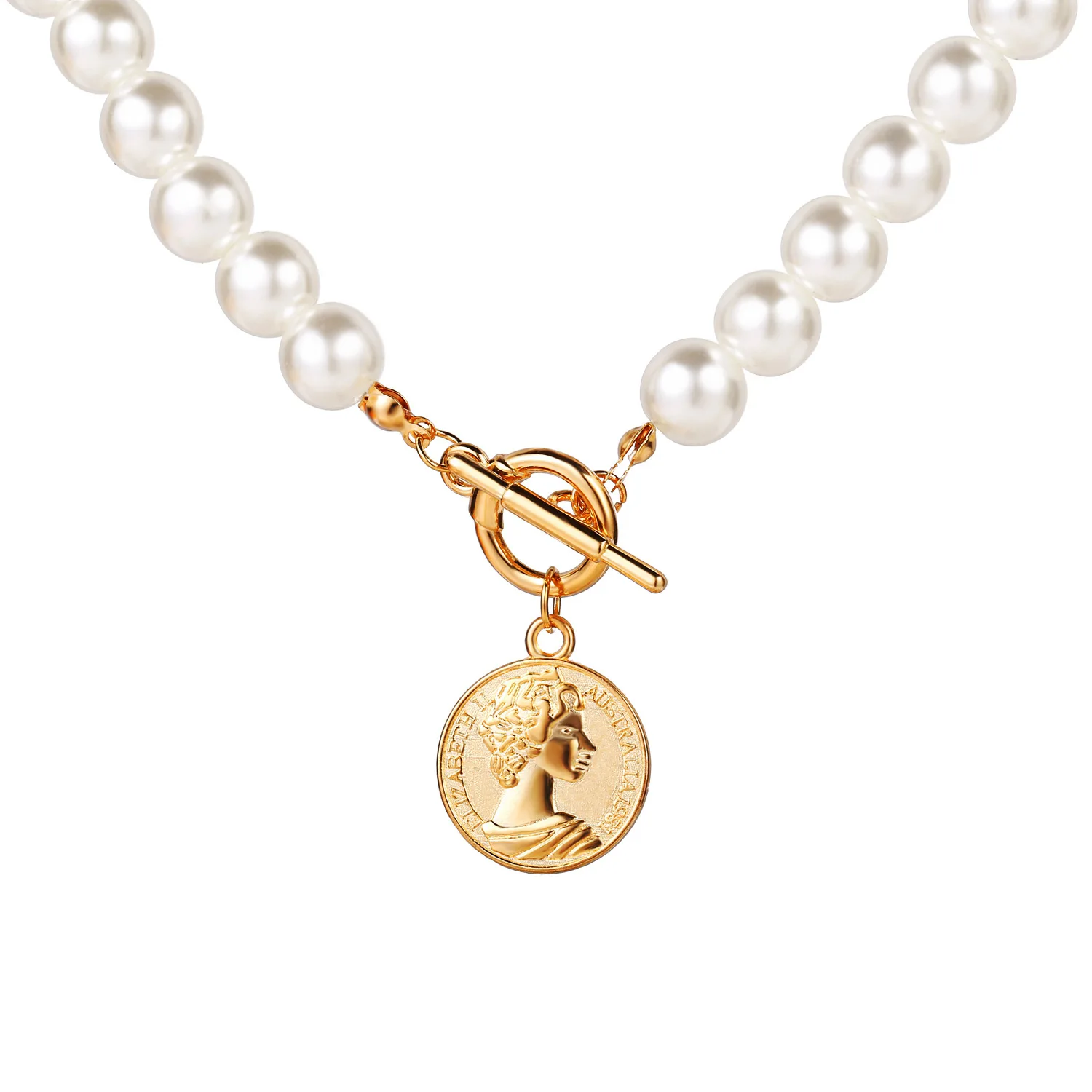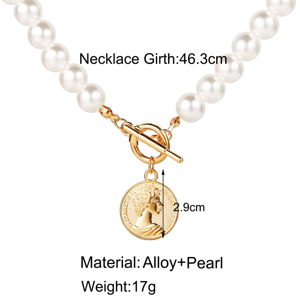 European and American artificial pearl coin pendant necklace creative retro simple collarbone chain