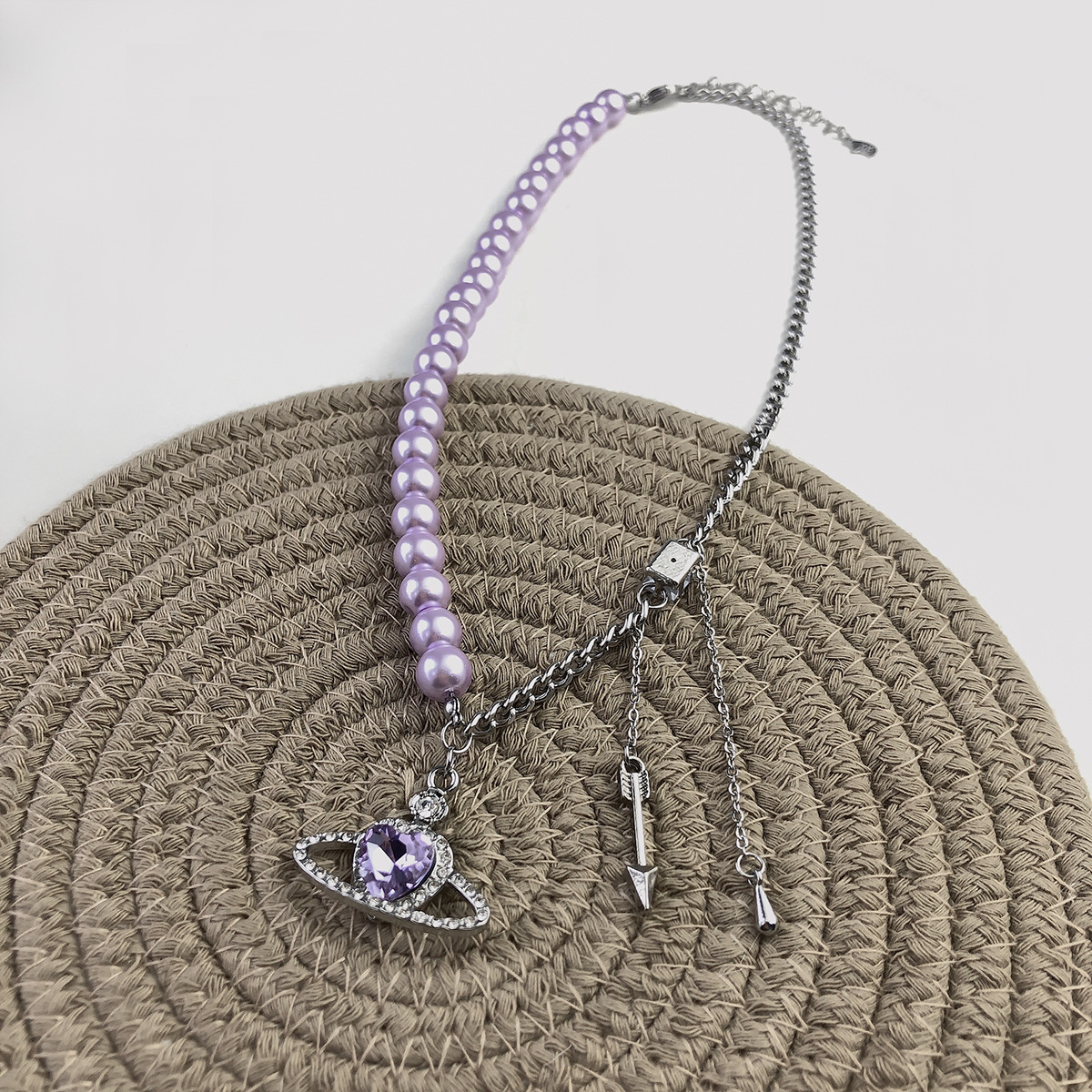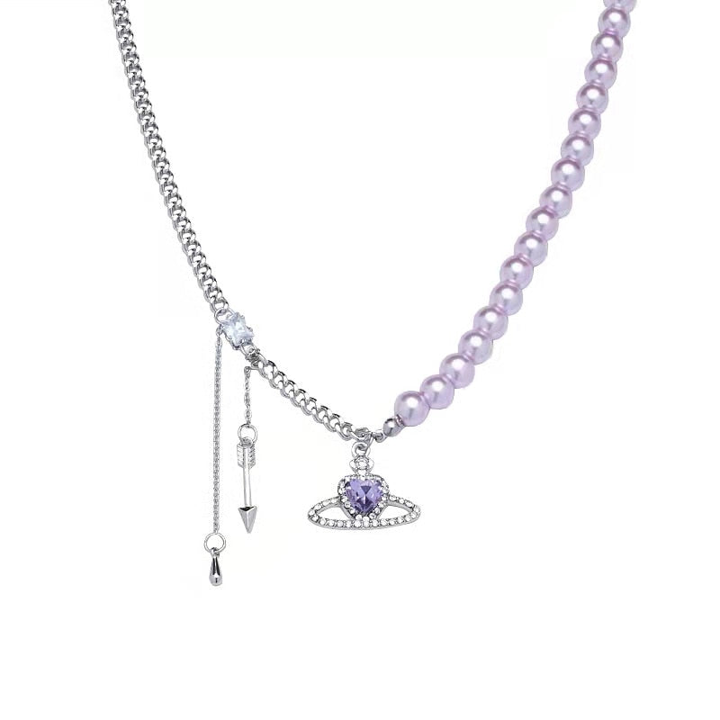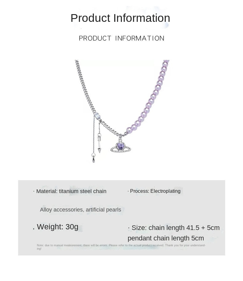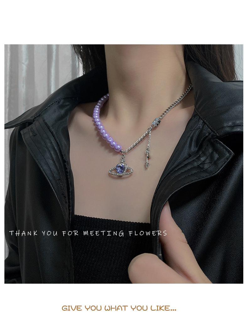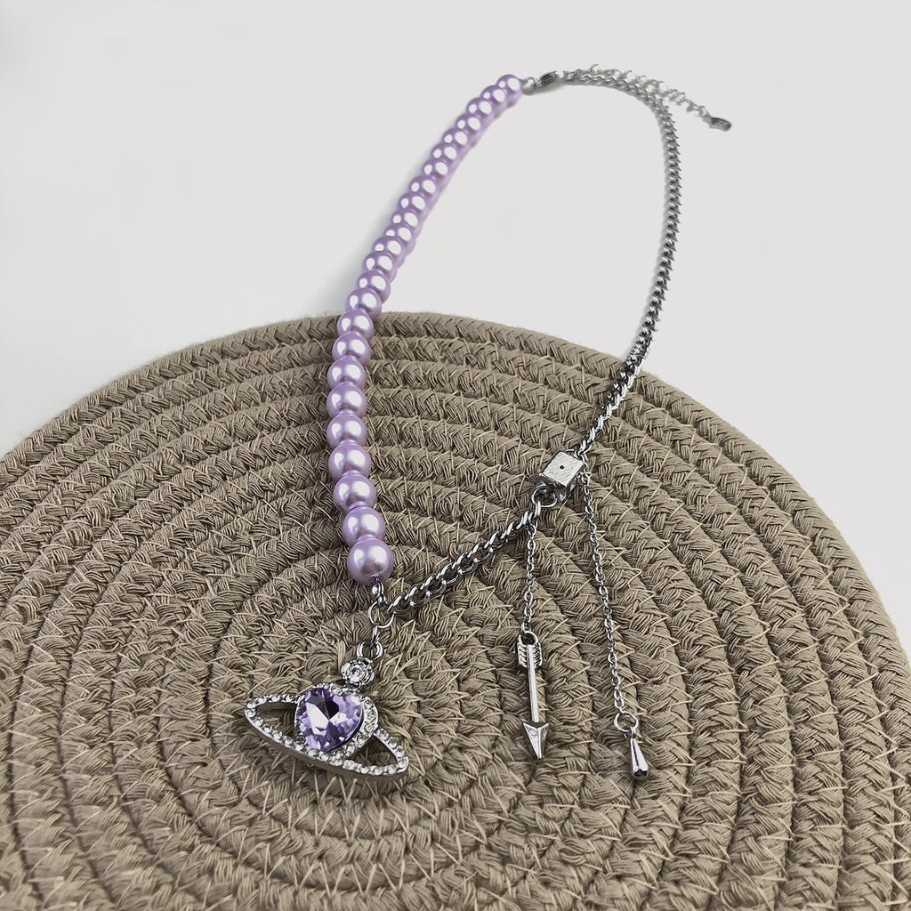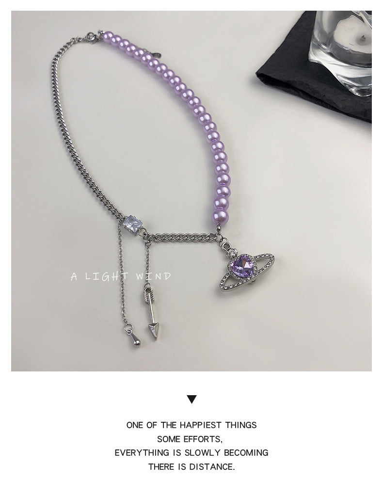 European and American purple romantic love pearl necklace female niche design pure desire collarbone chain