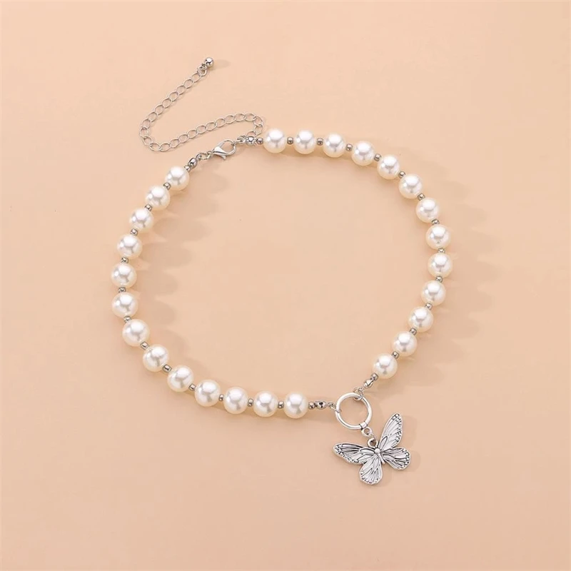 Exquisite And Simple Butterfly Pendant Necklace Elegant Temperament Pearl Beaded Clavicle Chain Ladies Jewelry Gift