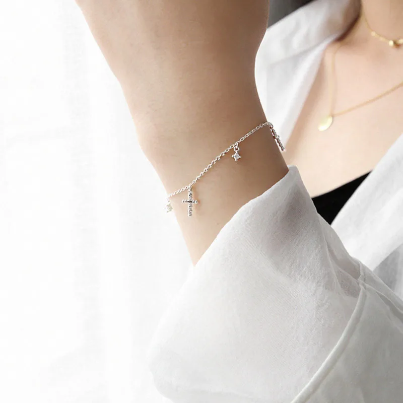 Exquisite Cross Zircon Pendant Bracelet 2020 For Women Wedding 925 Sterling Silver Link Chain Mujer Moda Jewelry pulseira