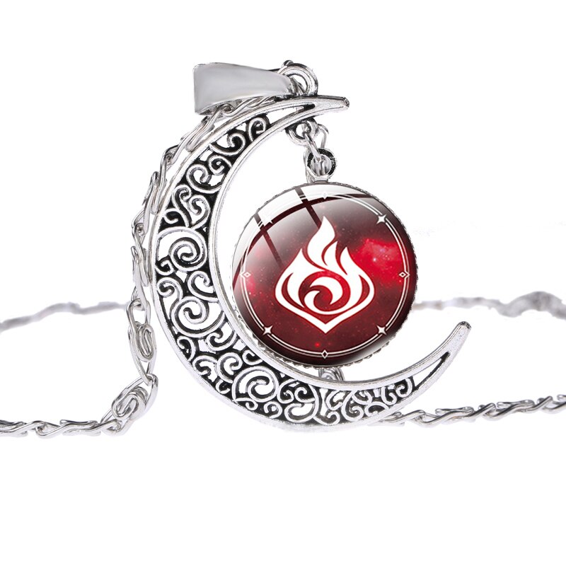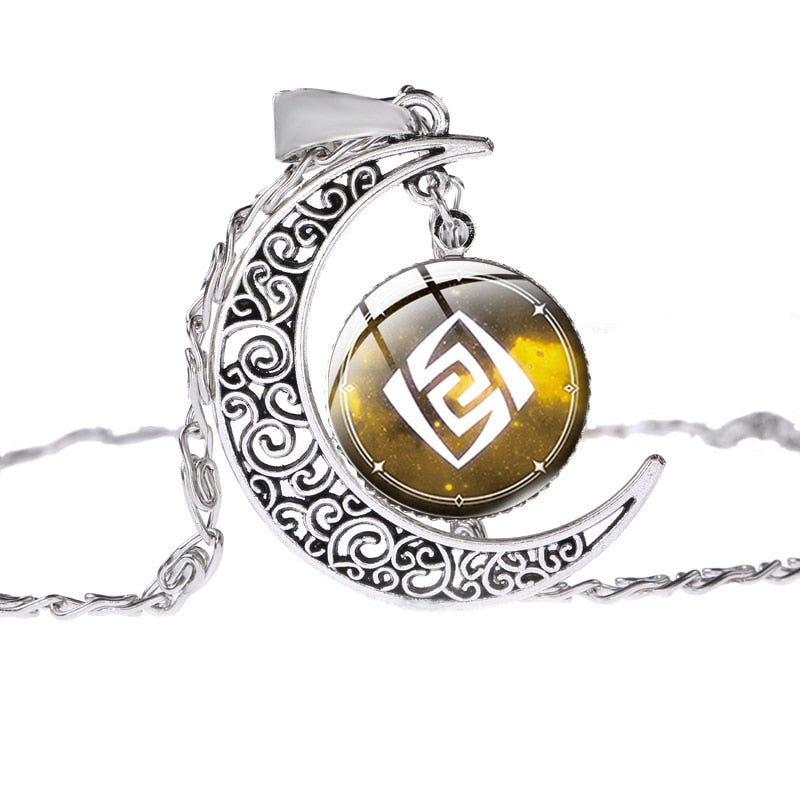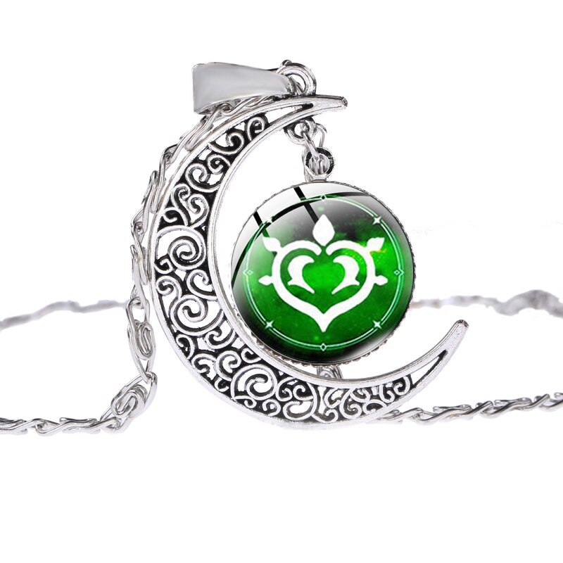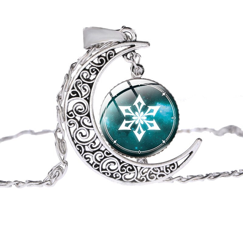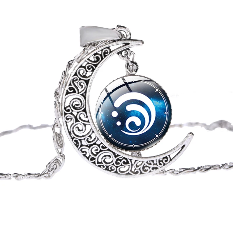 Eye of God Time Gem Pendant Necklace Genshin Impact 7 Elements Game Glass Cabochon Moon Shape Necklace Cosplay Jewelry for Fans
