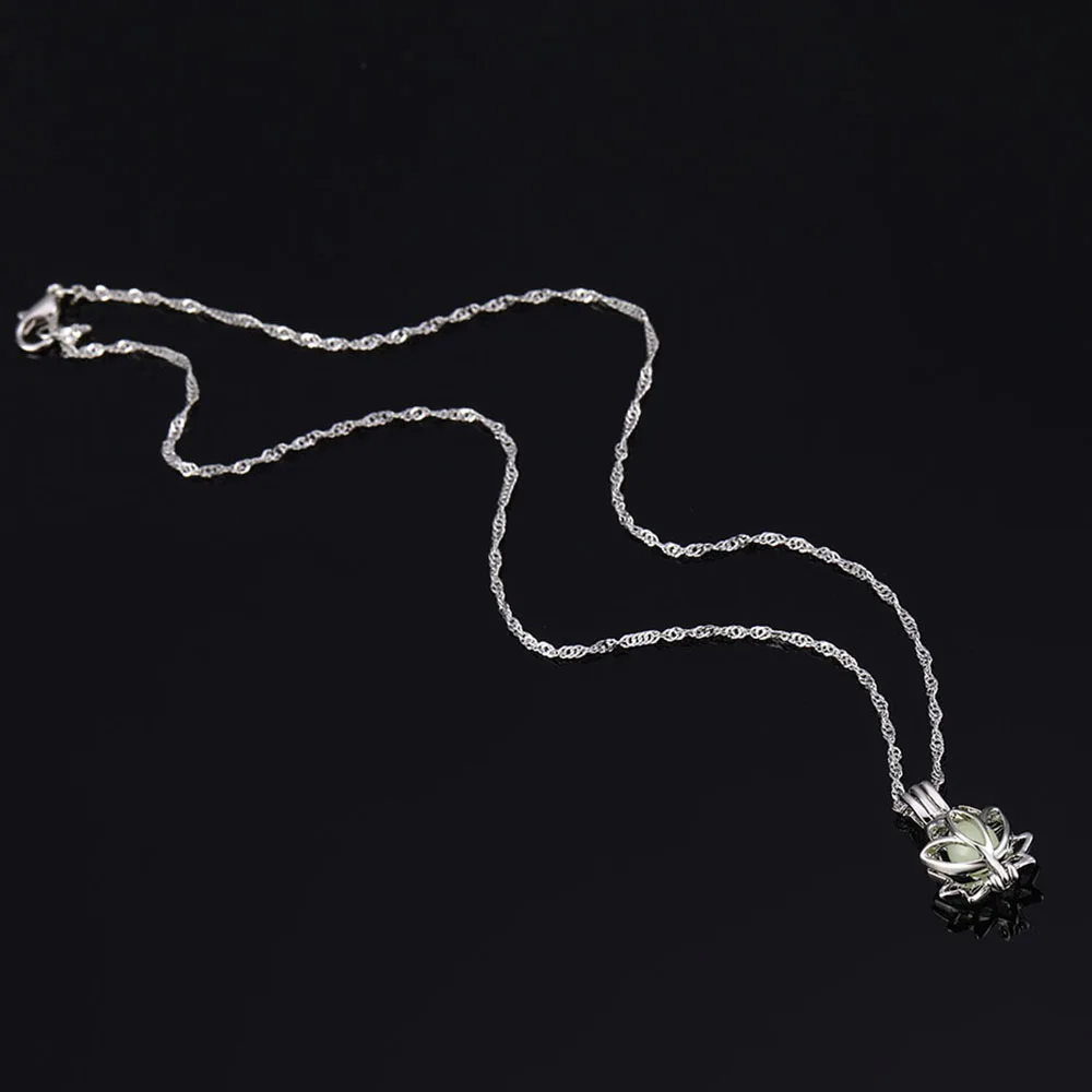 FAMSHIN Lotus Luminous Pendant Necklace 3 Colors Charm Chain Pendant Glowing Stone Dark Statement Necklace Party Jewelry