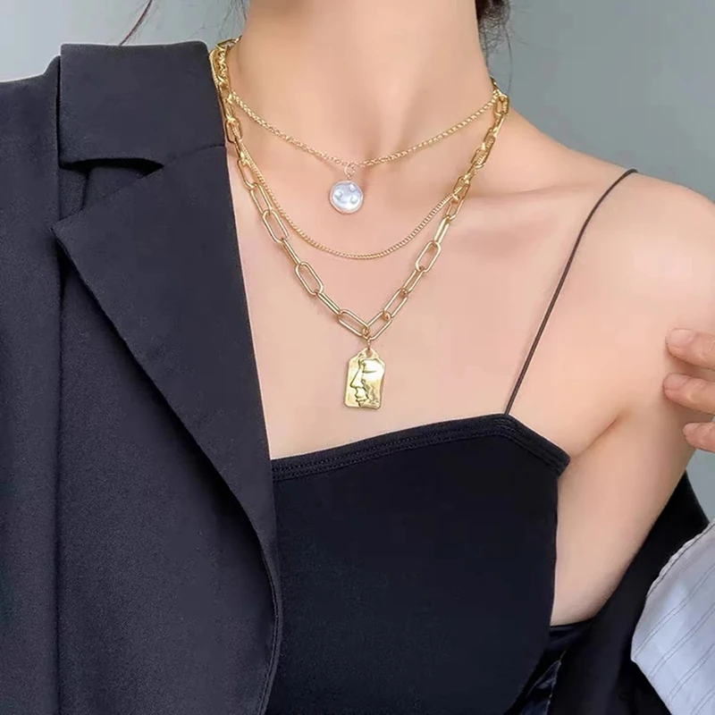 FAMSHIN Mutlti-layer Necklace For Women Men Party Thick Gold Color Choker Chains Coin Pendant Necklaces Jewelry