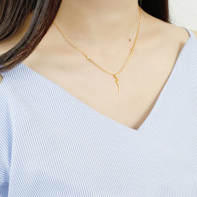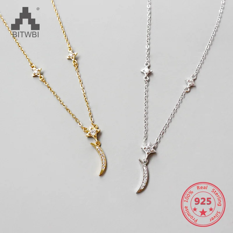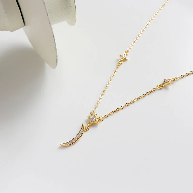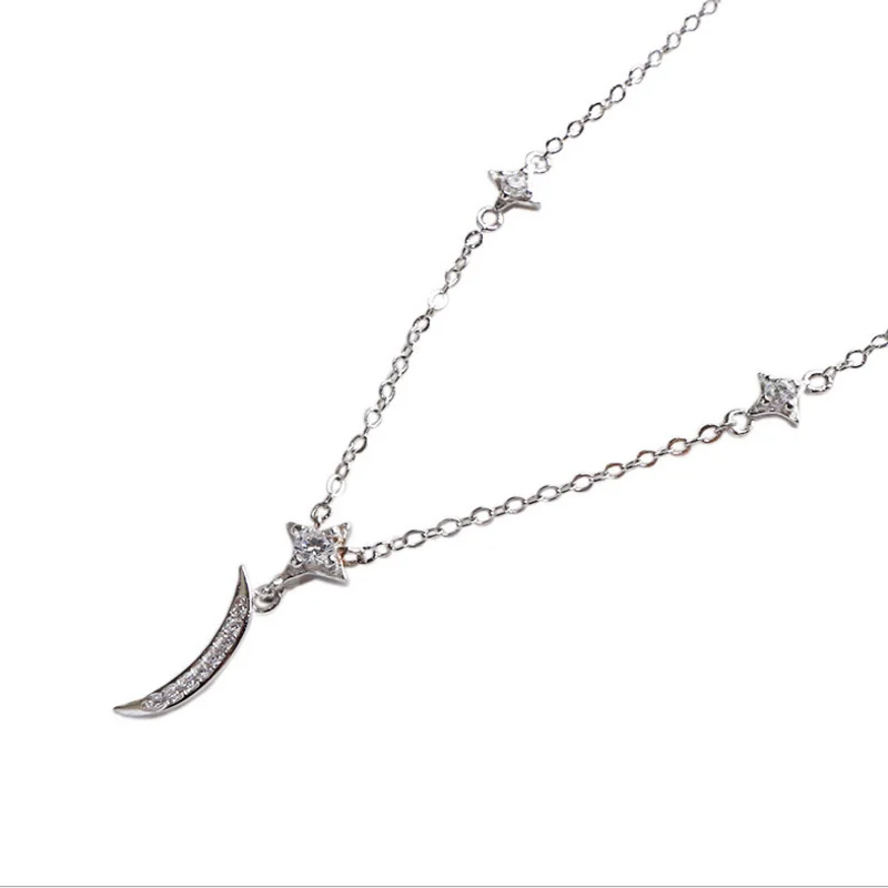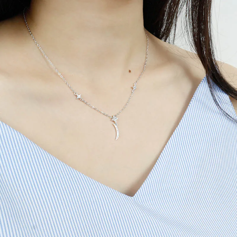 Fashion AAAA Zircon 925 Sterling Silver Sweet Cute Moon And Stars Chain Necklaces & Pendants For Women Fine Jewelry