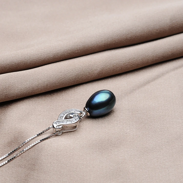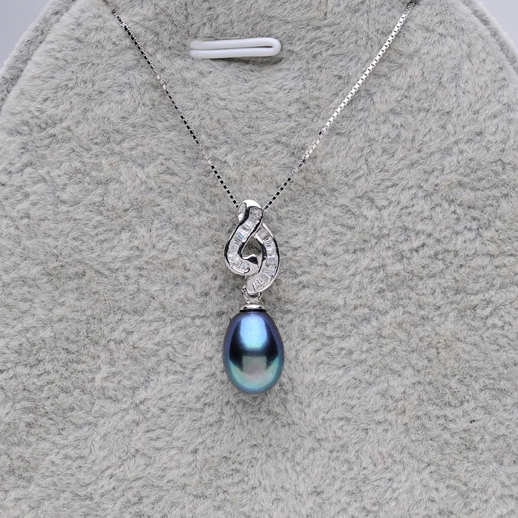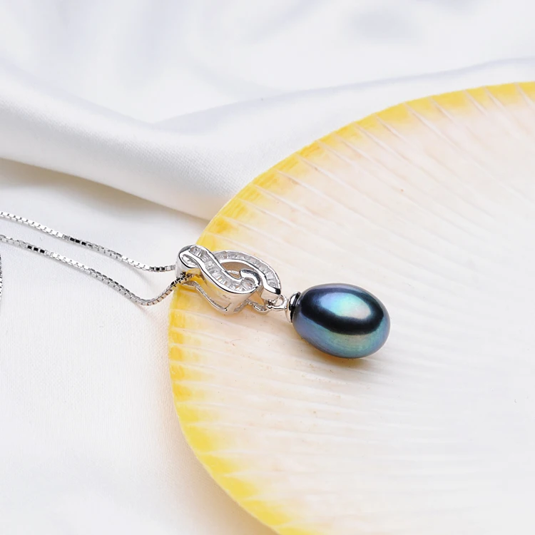 Popular style 925 Sterling Silver Pearl Pendant Necklaces For Women's 8-9mm Black Pearl Fine Jewelry