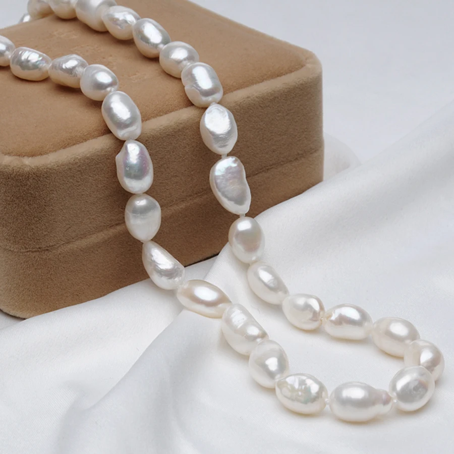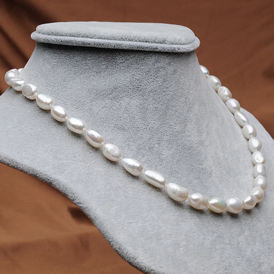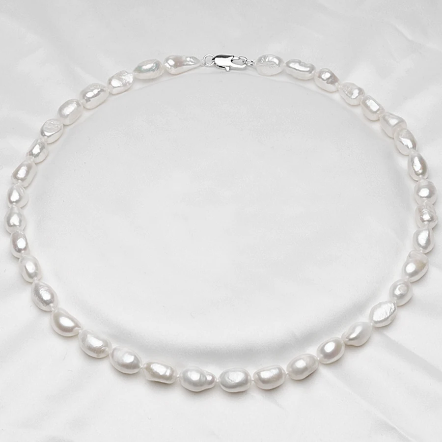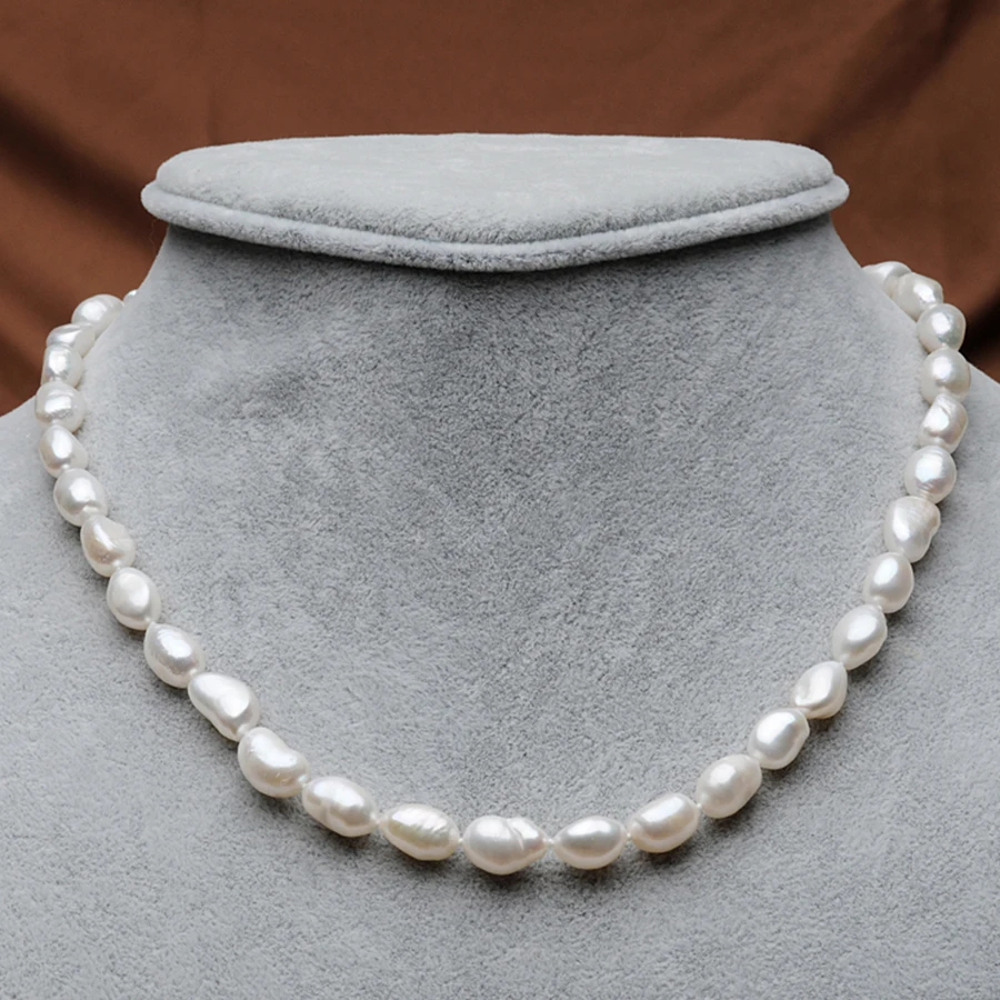 Pearl Baroque Style 7-8mm Ellipse Teardrop Shape White Natural Pearls Choker Necklaces For Women's Fine Jewelry