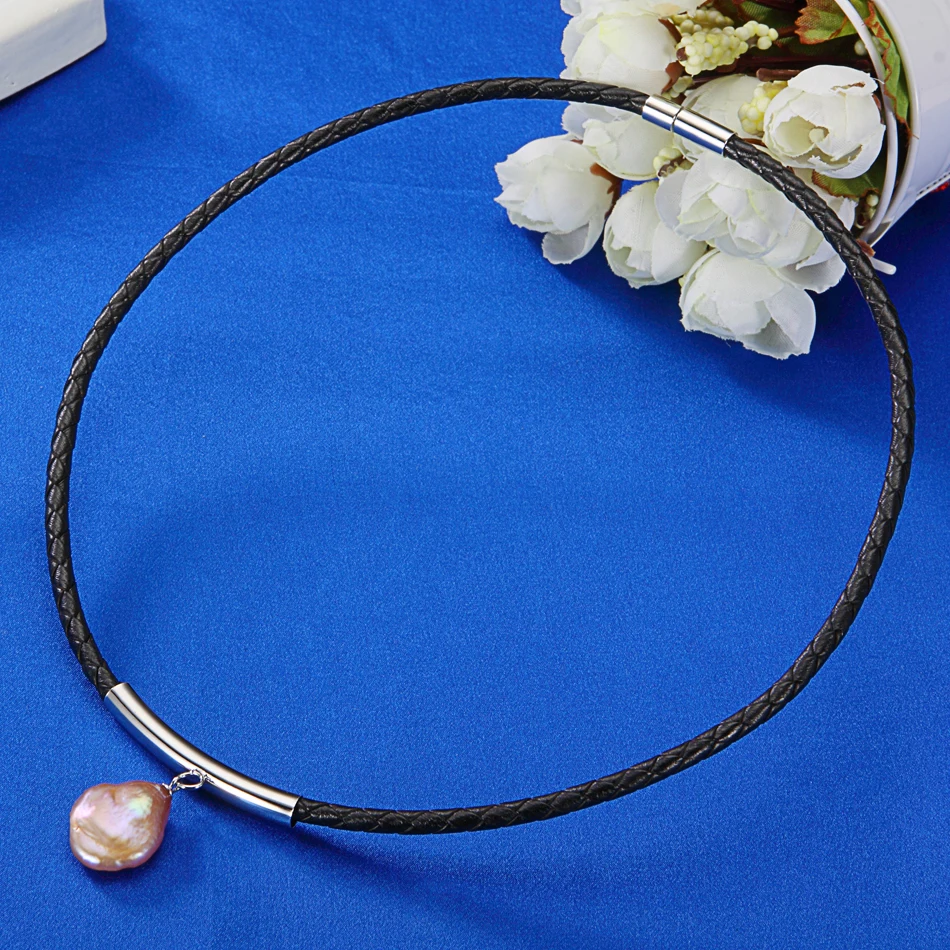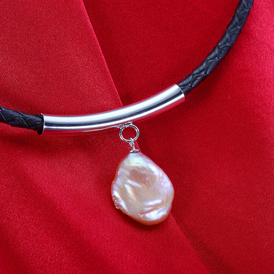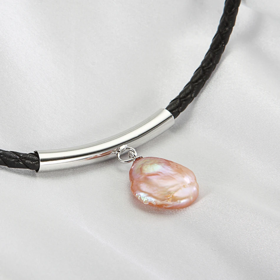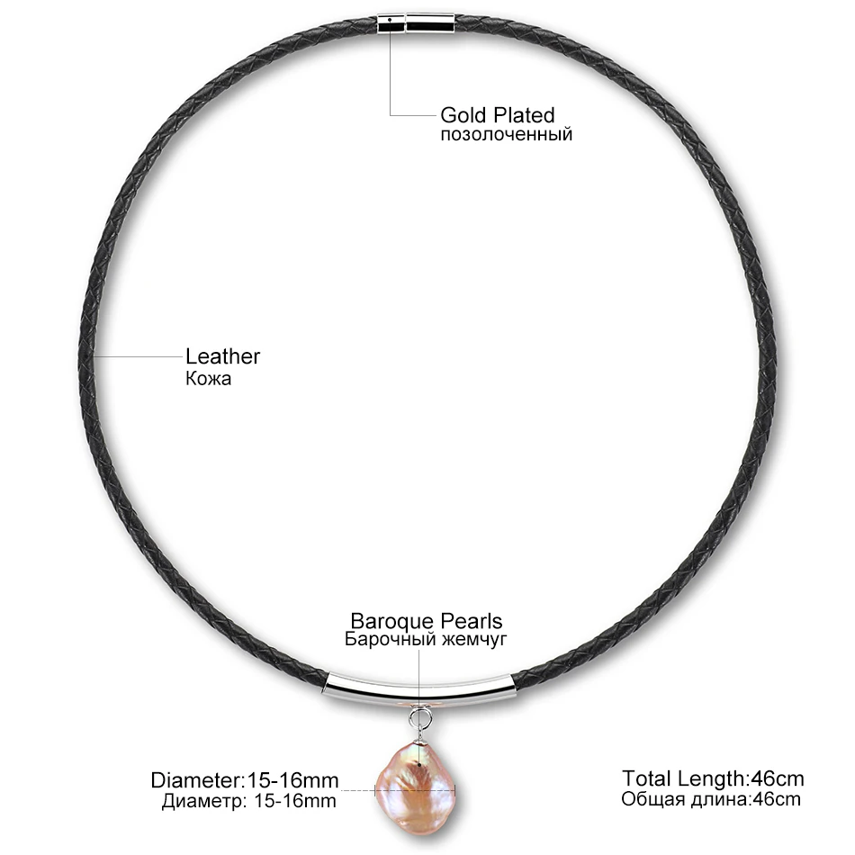 Black Leather Rope Choker Pendant Necklace 15-16MM Baroque Multicolor Button Pearl Necklace Trendy Necklace Lady Best Gift
