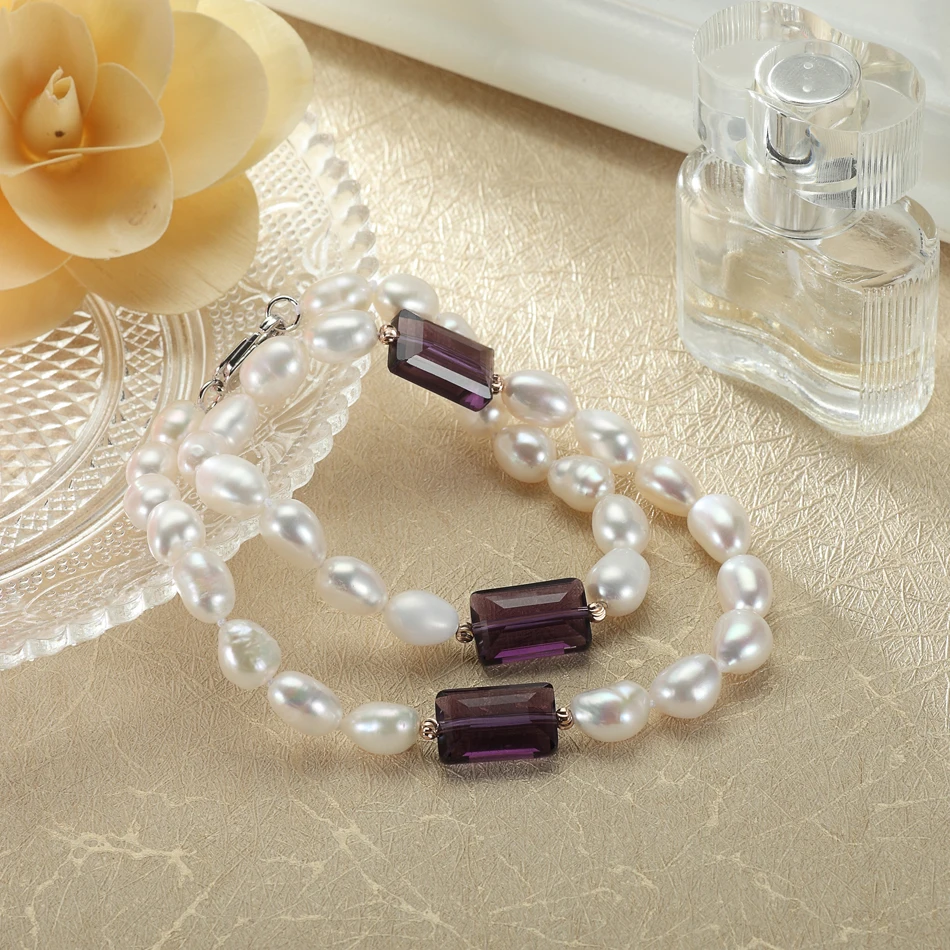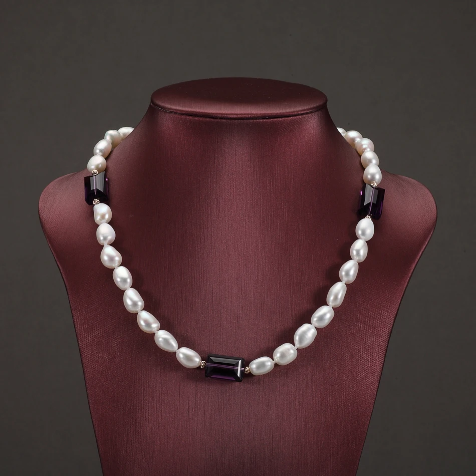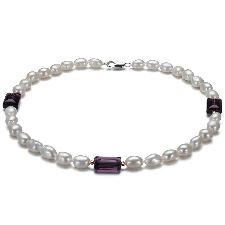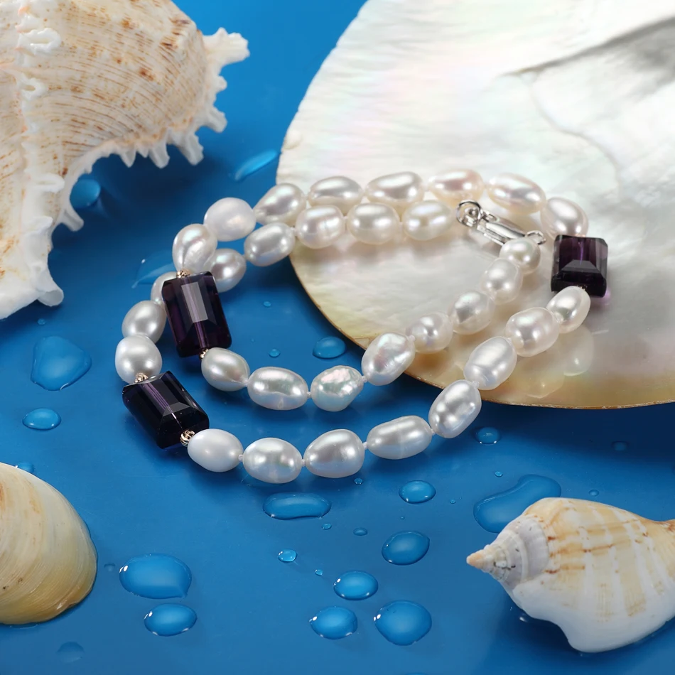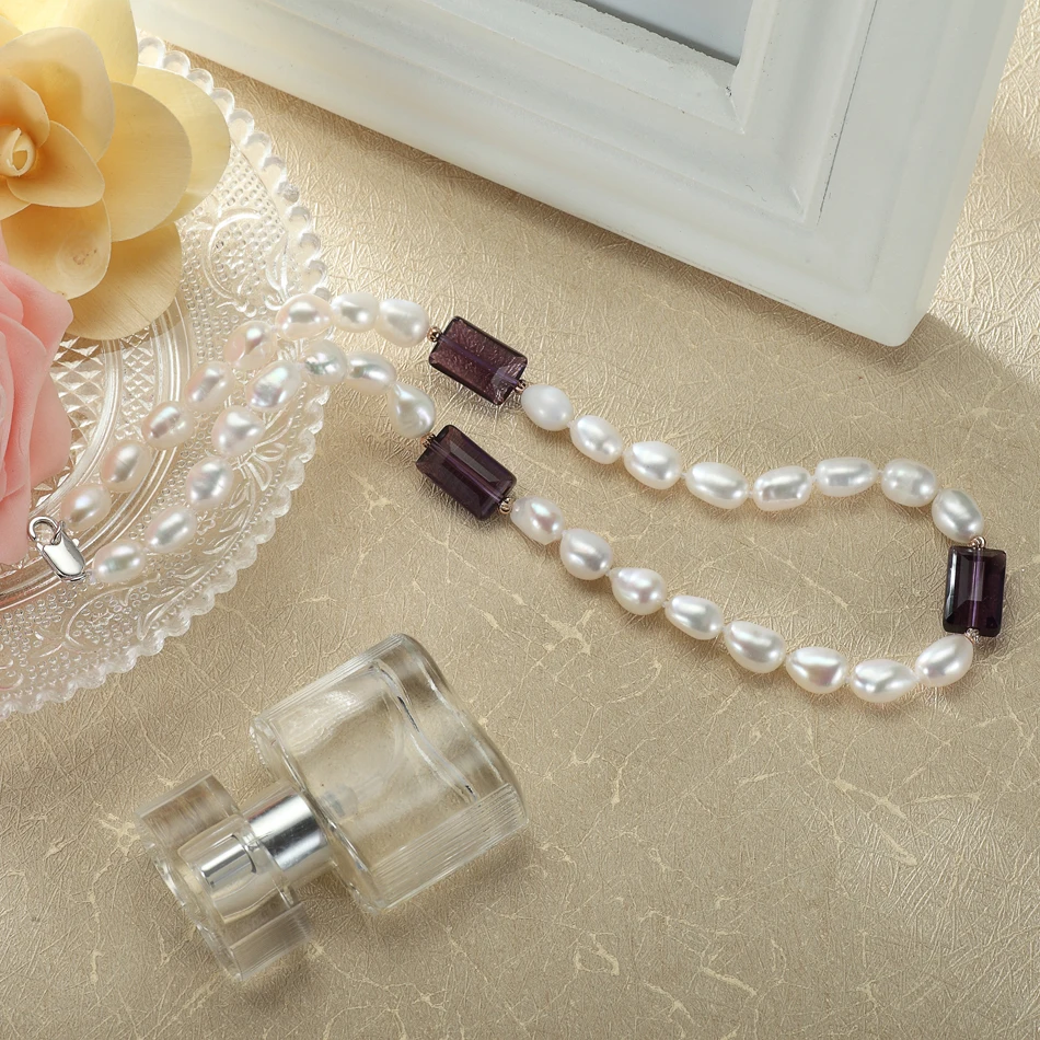 offer Baroque 7-8MM White Pearl Choker Necklace for Women Dark purple Crystal Gargantilla Pearl Jewelry