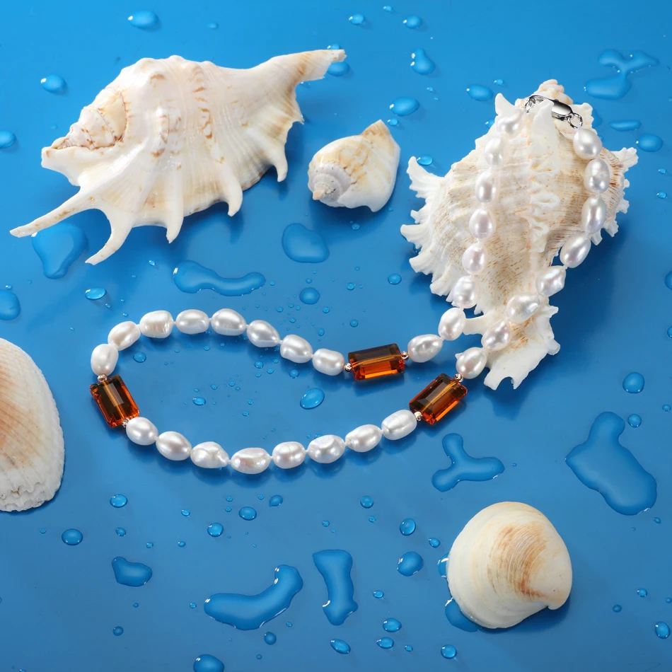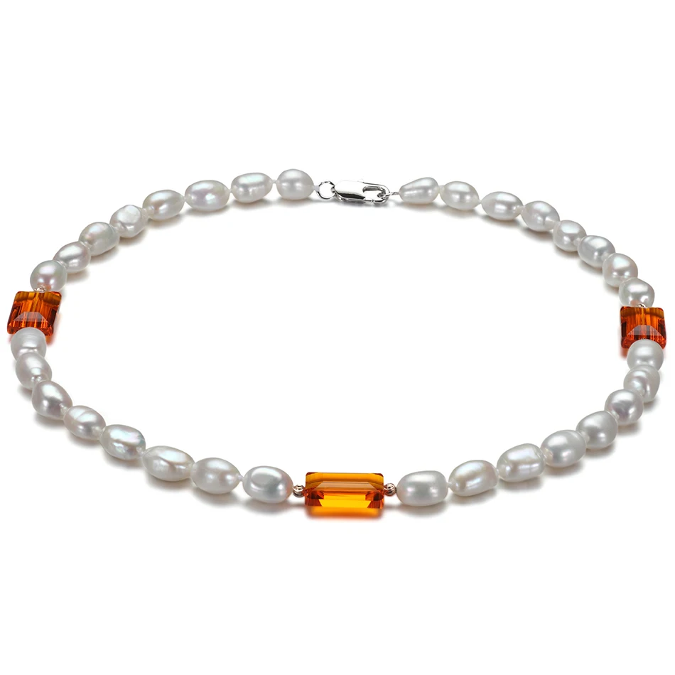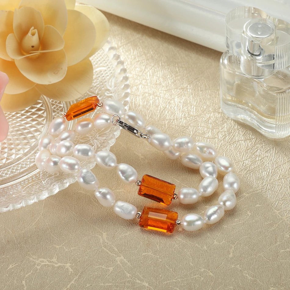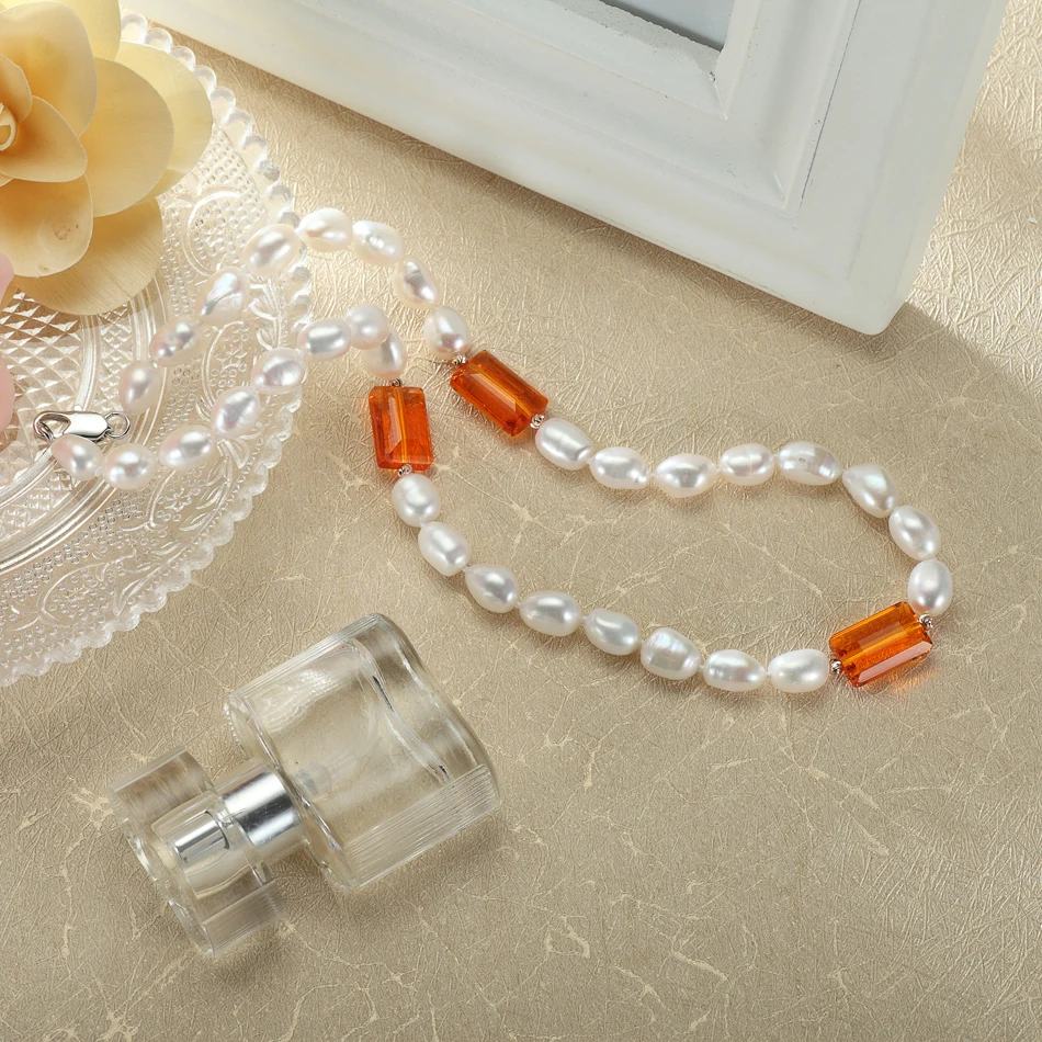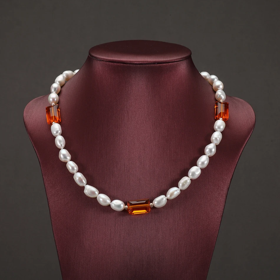 offer Baroque 7-8MM White Pearl Choker Necklace for Women Orange Crystal Gargantilla Fine Pearl Jewelry