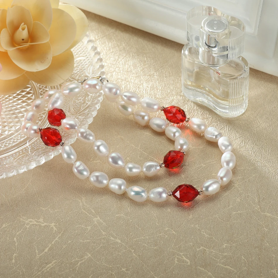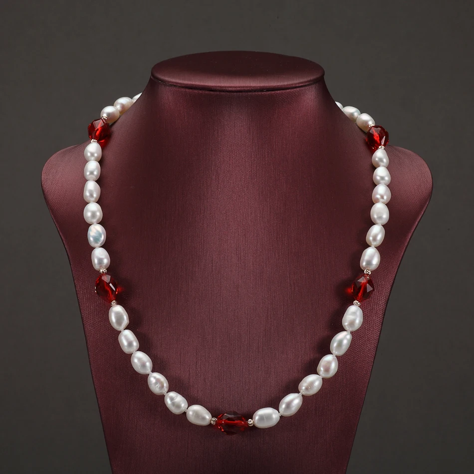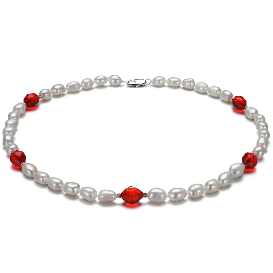 offer Baroque 7-8MM White Pearl Choker Necklaces for Women Red Crystal Gargantilla Fine Pearl Jewelry