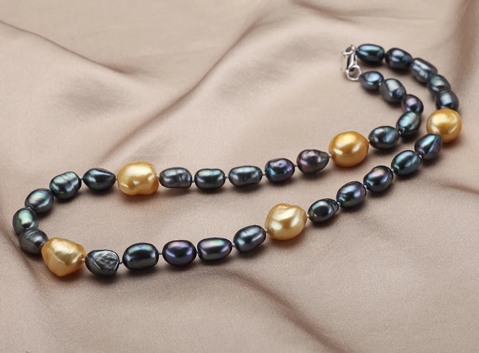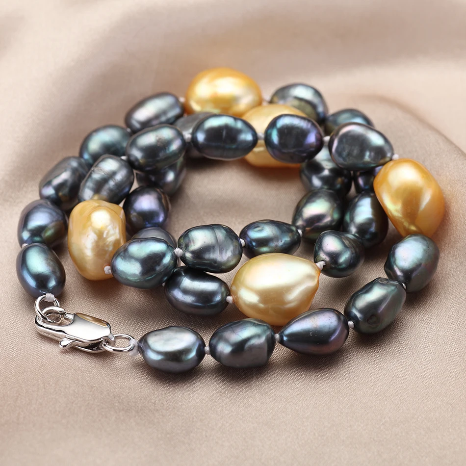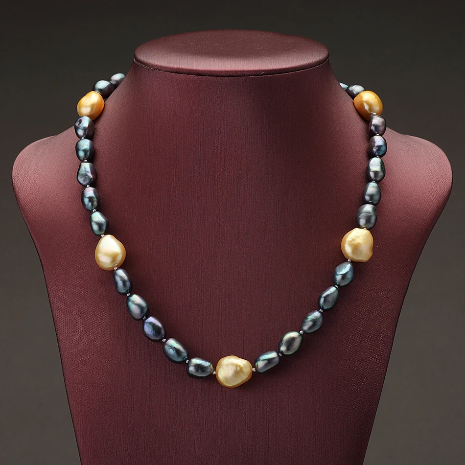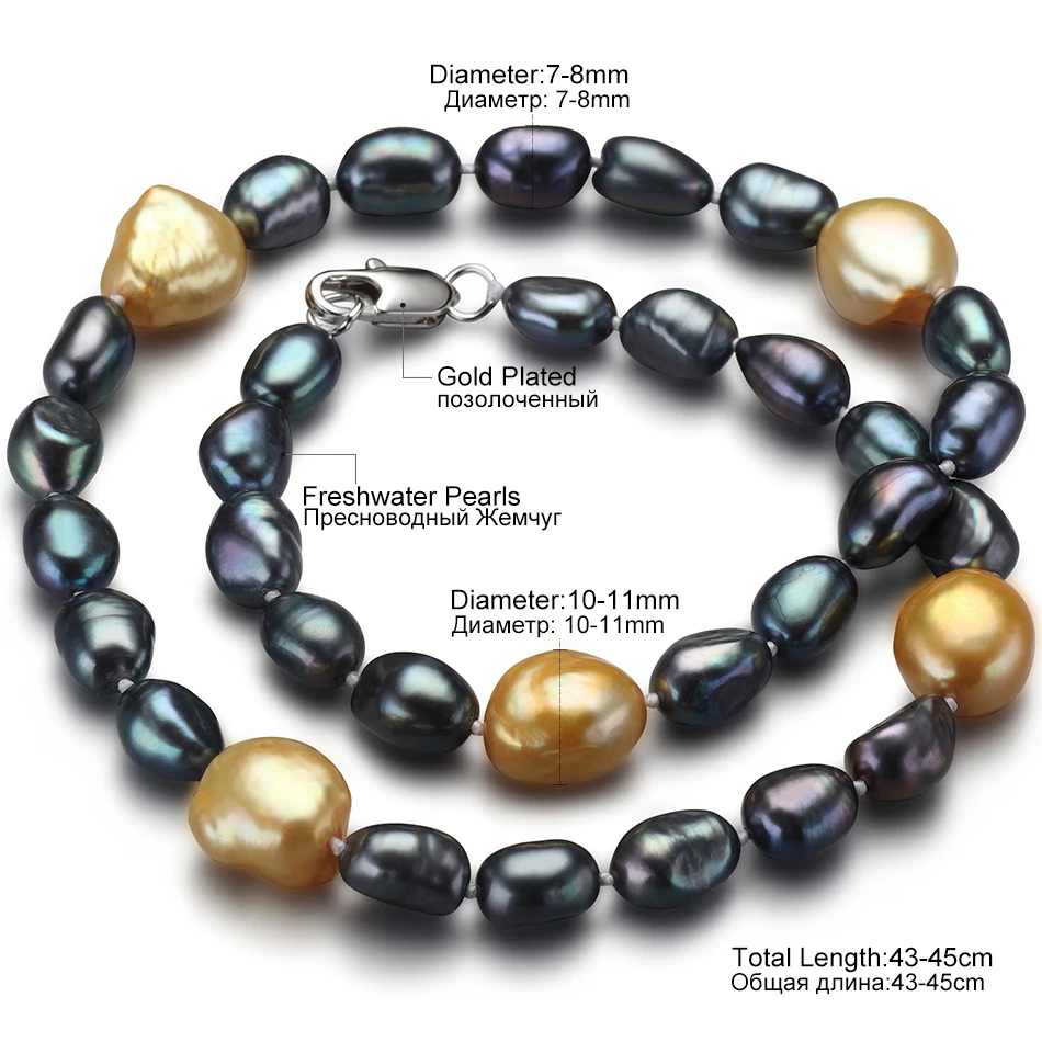 offer Trendy style Baroque 7-8/10-11MM Black/Gold color Pearl Necklace for Women's Pearl Jewelry Collar