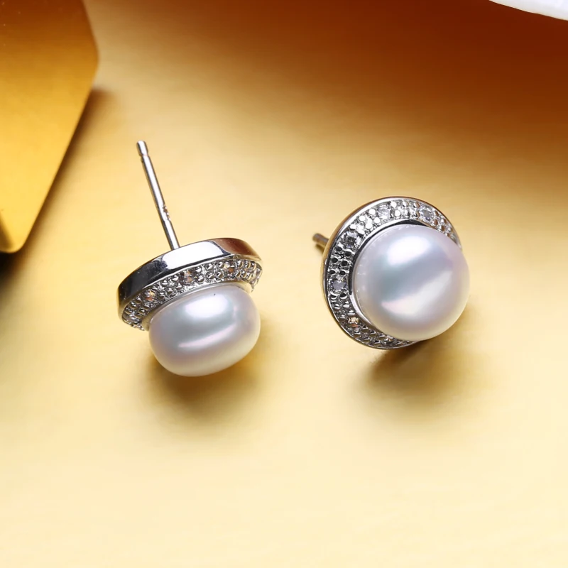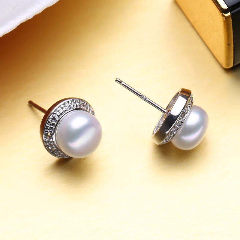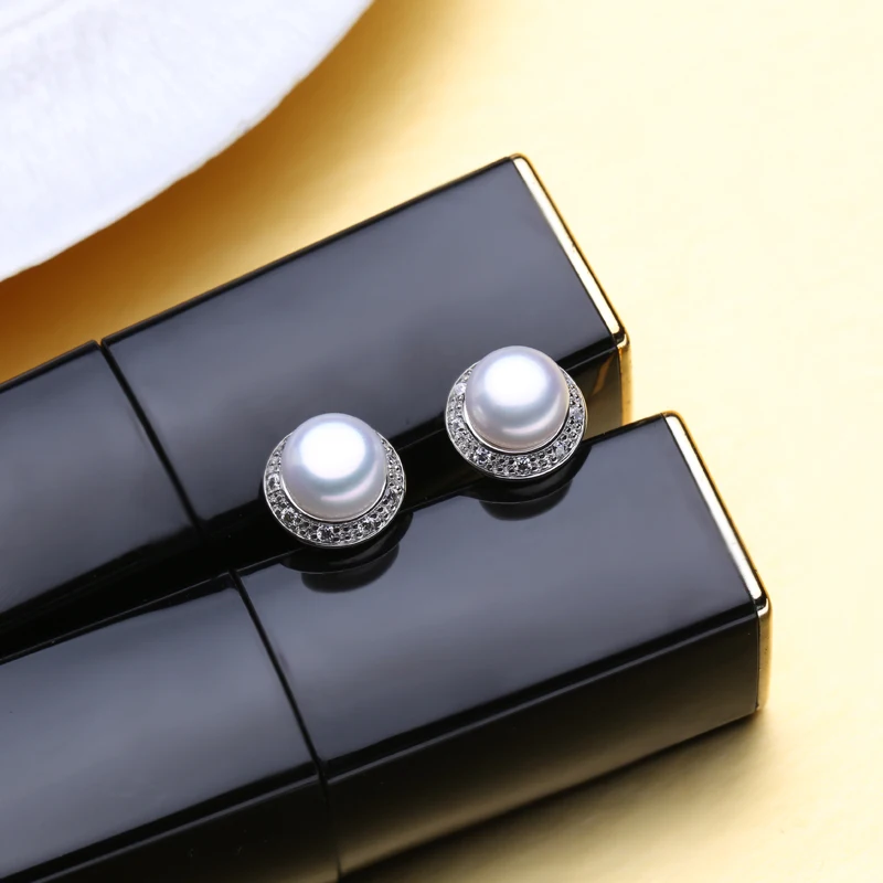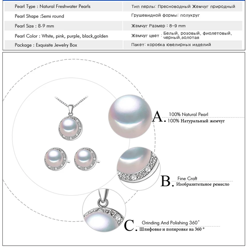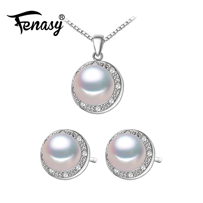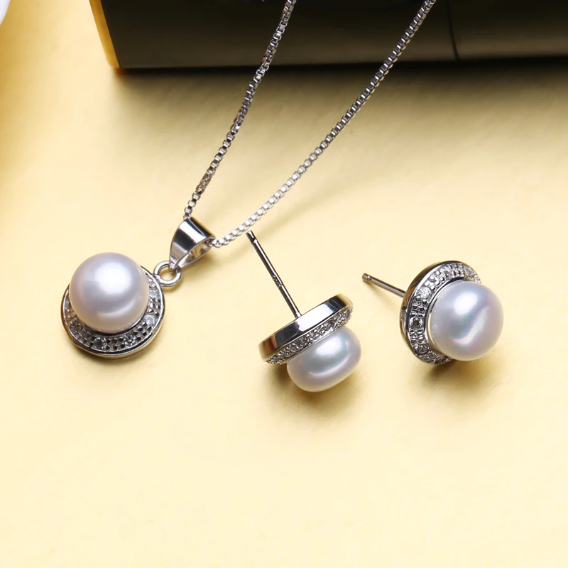 Pearl Jewelry Sets natural round Pendant 925 Sterling Silver necklace for women cute stud pearl earrings 8-9mm