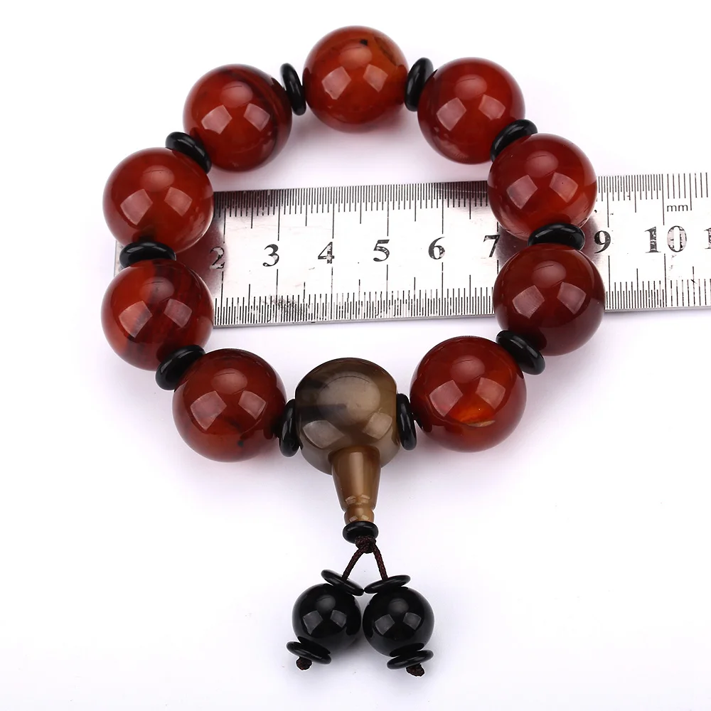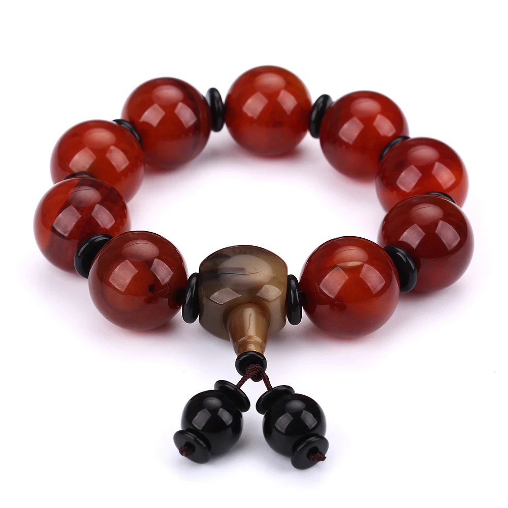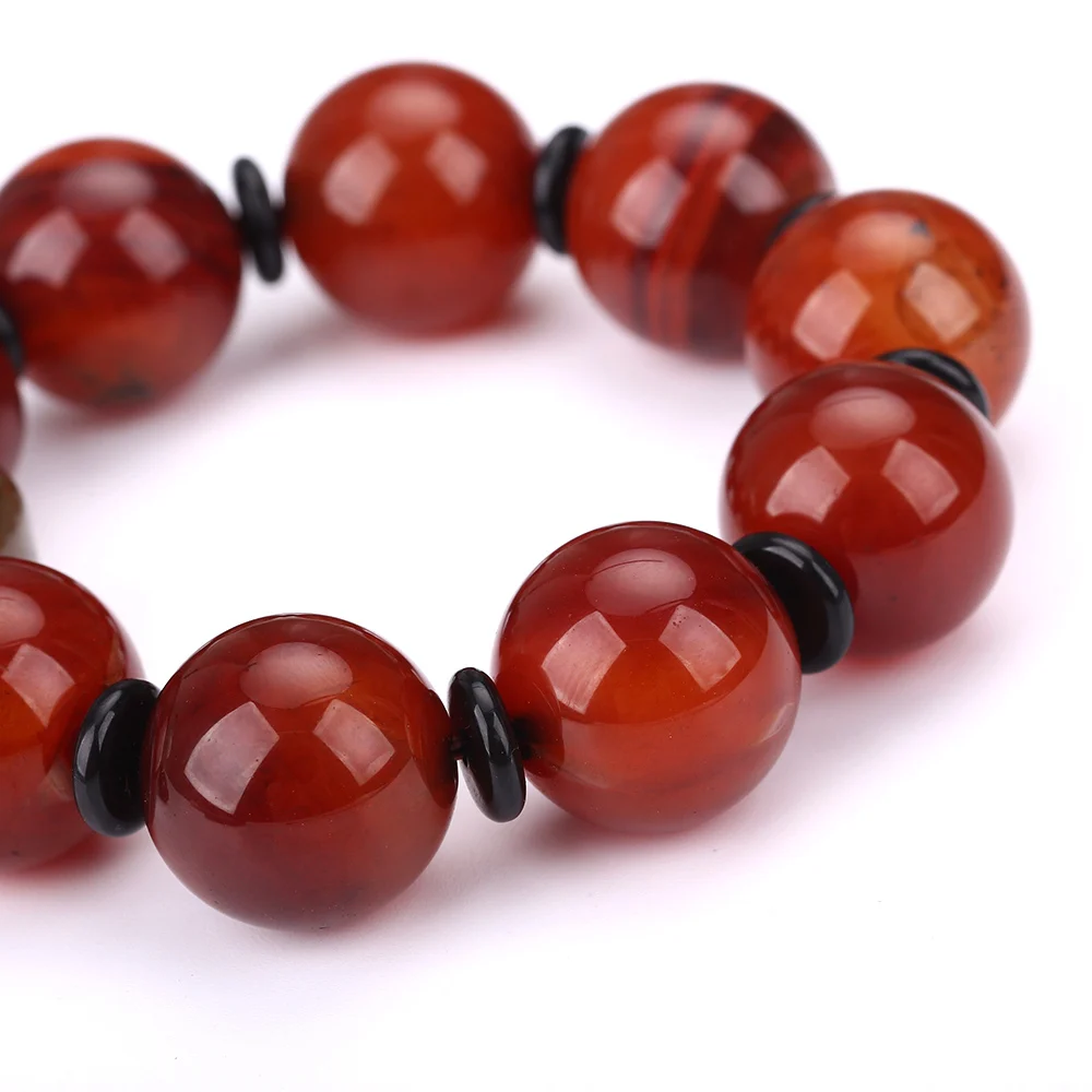 Red Agate Bracelets Hyperbole Men Big Bangle Natural Stone Wristband Ruby Beaded Accessories Black Spacer Anime Pendant