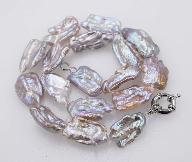 pearl pink/purple biwa baroque reborn keshi necklace 17inch beads nature